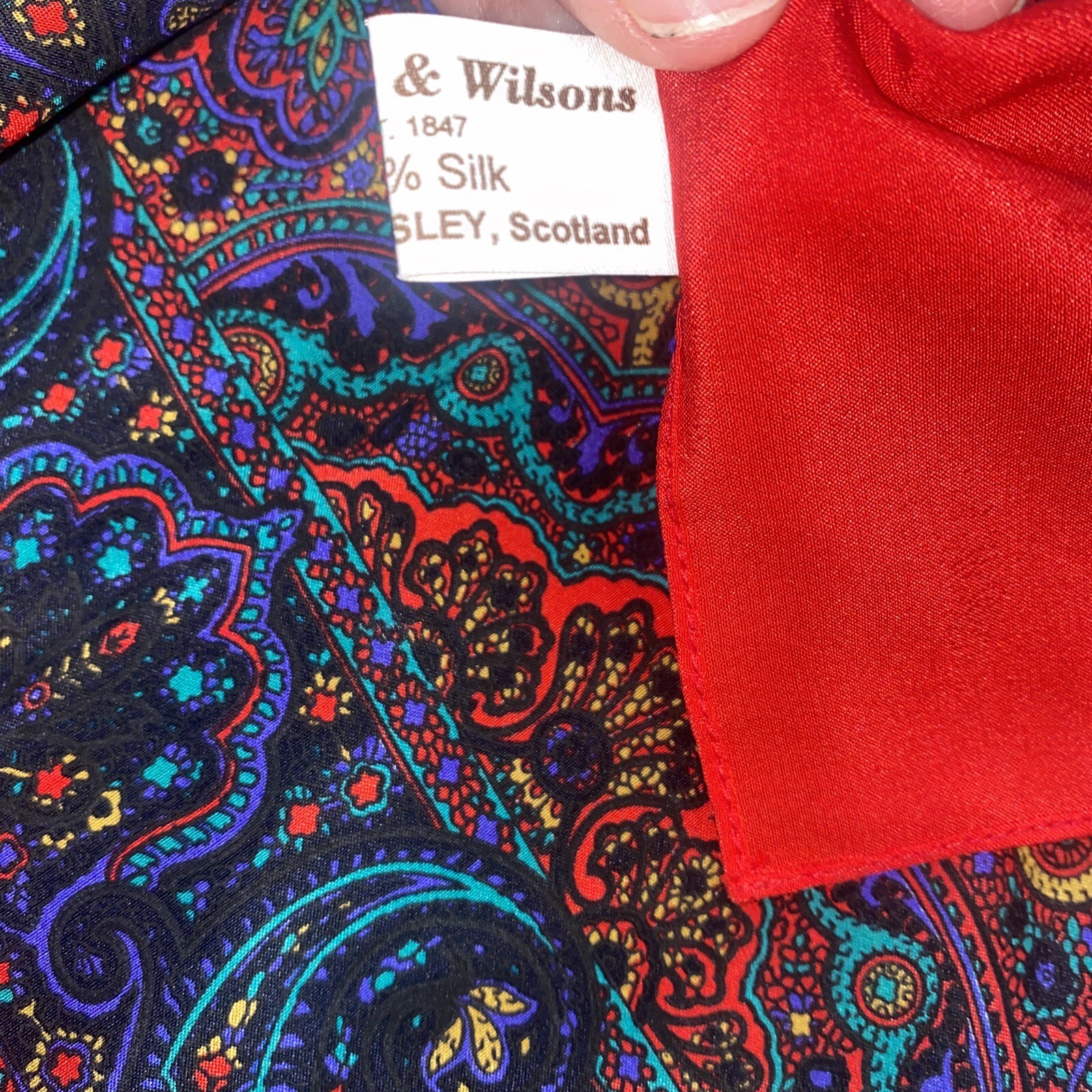как выглядит Whitehill Wilson s 100 Silk Scarf Multicolored Paisley 100 Years 30 X 30 EUC фото