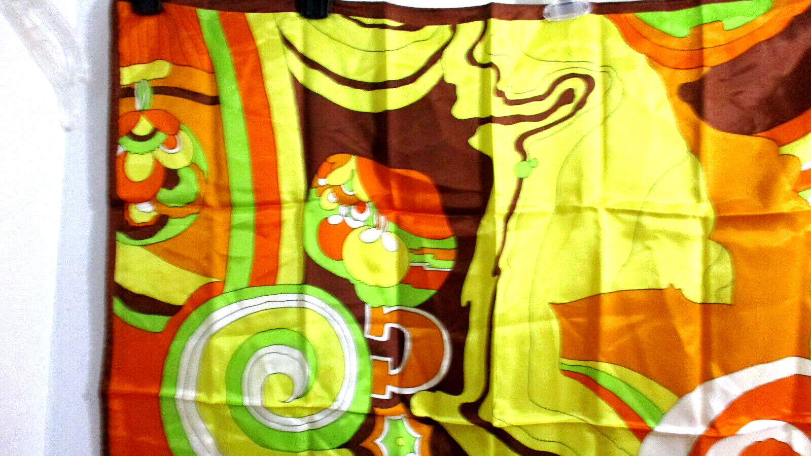 VINTAGE MADE IN JAPAN Brown Orange Green Yellow ACETATE TWILL SCARF 30 x 30