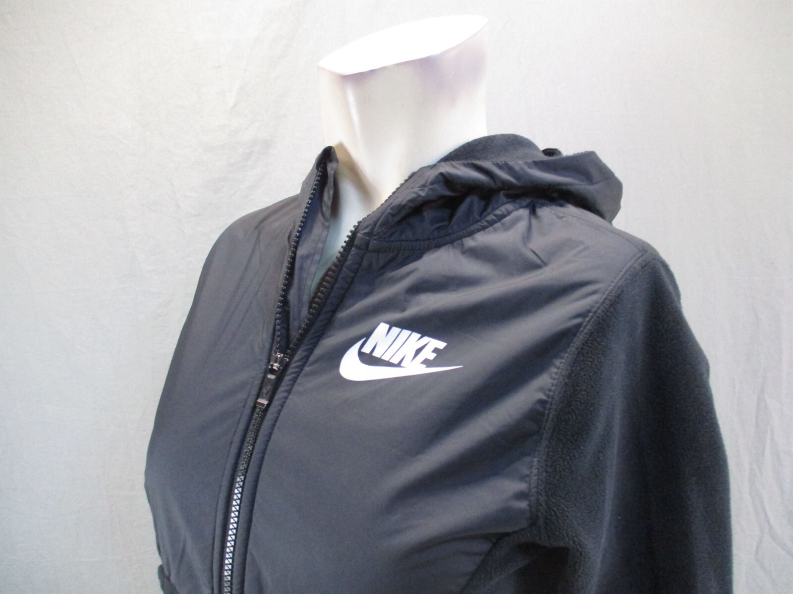 как выглядит NIKE DRI-FIT Size M Womens BLK Full Zip Stand Collar Fleece Athletic Jacket 668 фото