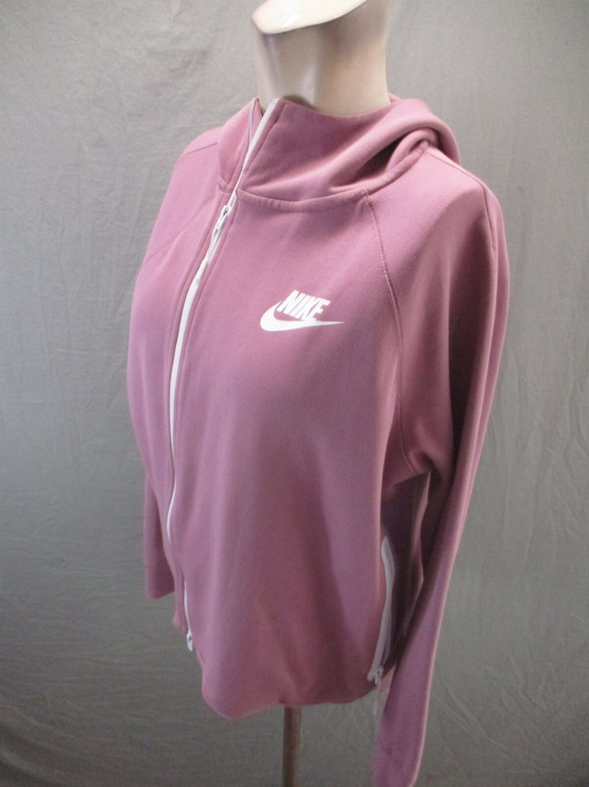 NIKE Size M Womens Pink Cotton Blend Full Zip Hood Pocket Athletic Jacket 606