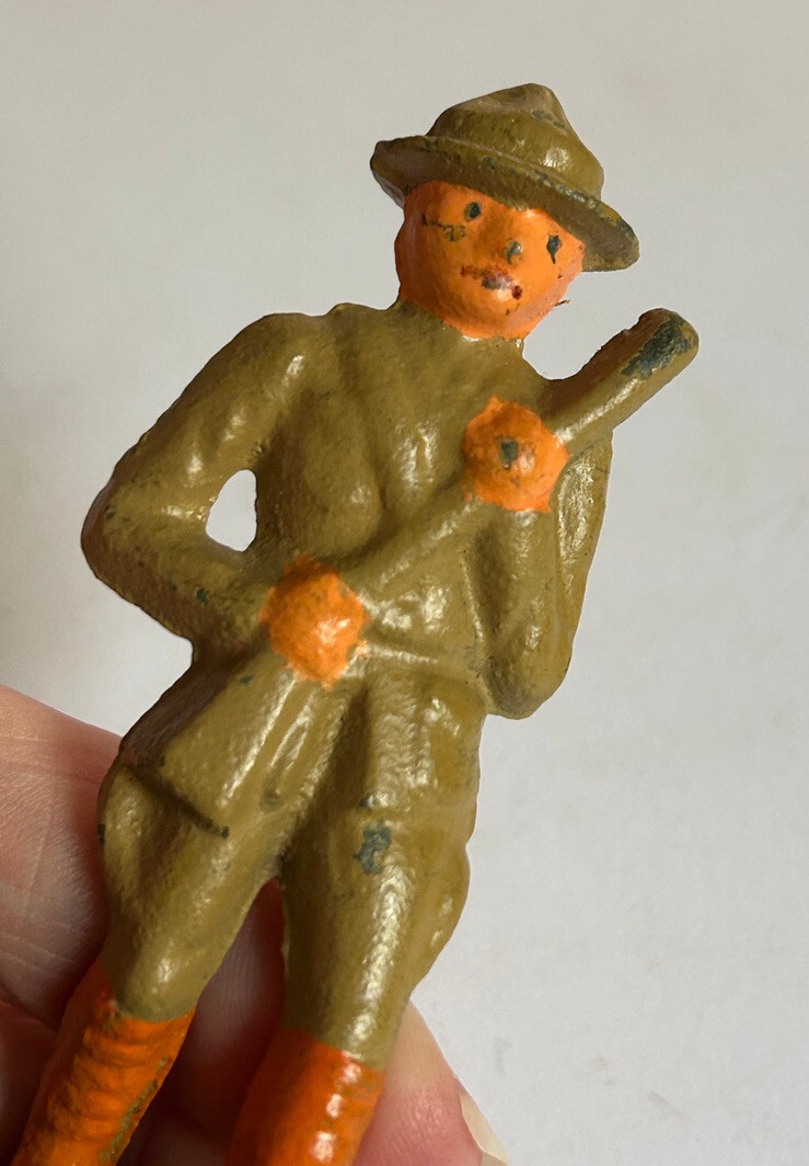 как выглядит Antique Grey Iron Toy Soldier US Doughboy with Rifle Vintage Nice фото