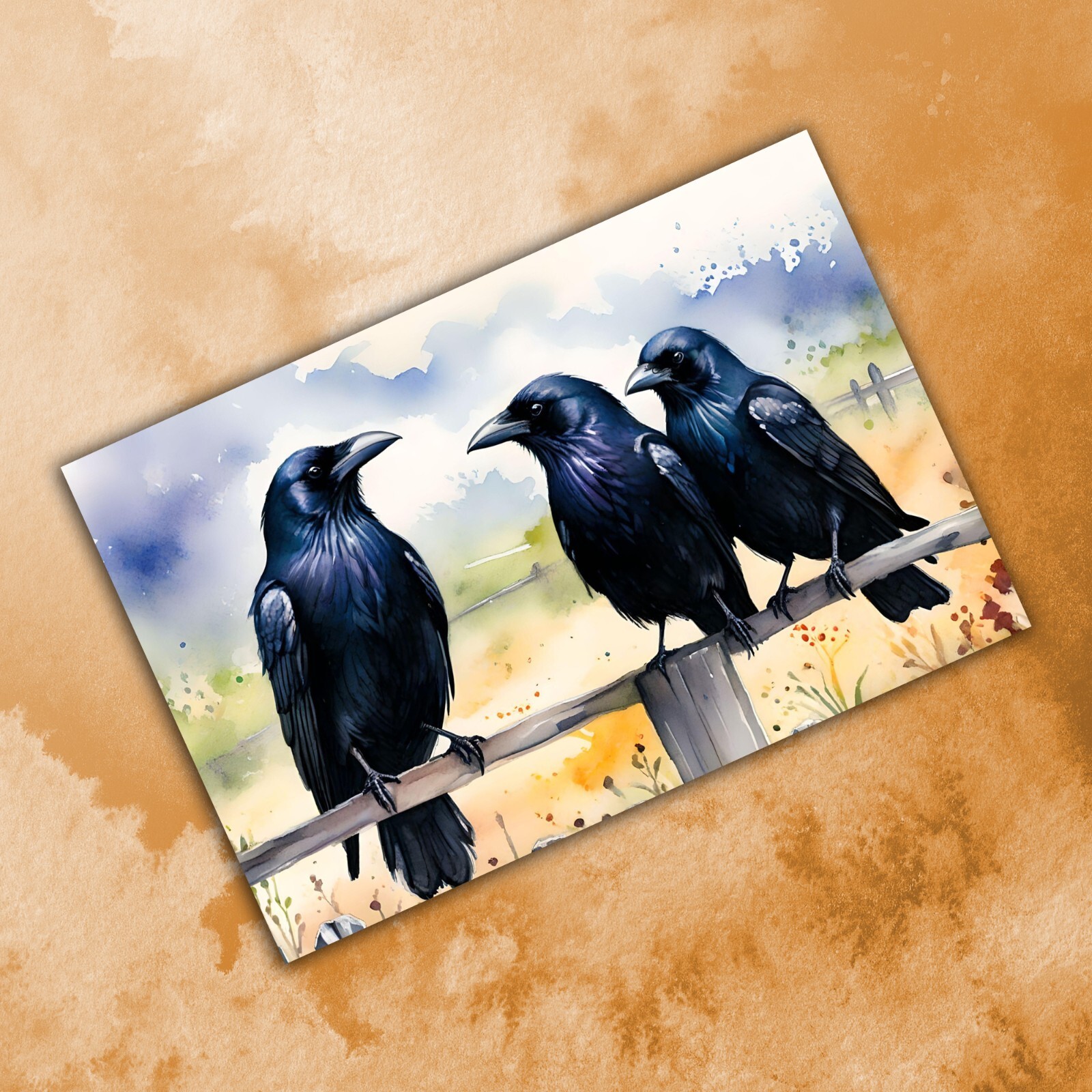как выглядит 6 Assorted All Occasion Note Cards Blank Greeting Cards Ravens Blackbird Crow фото
