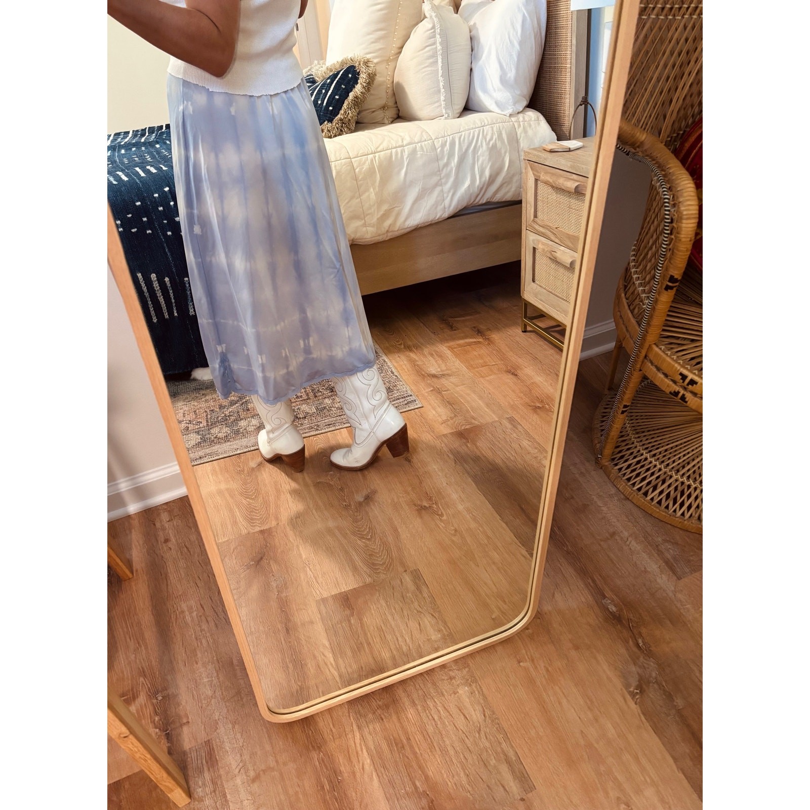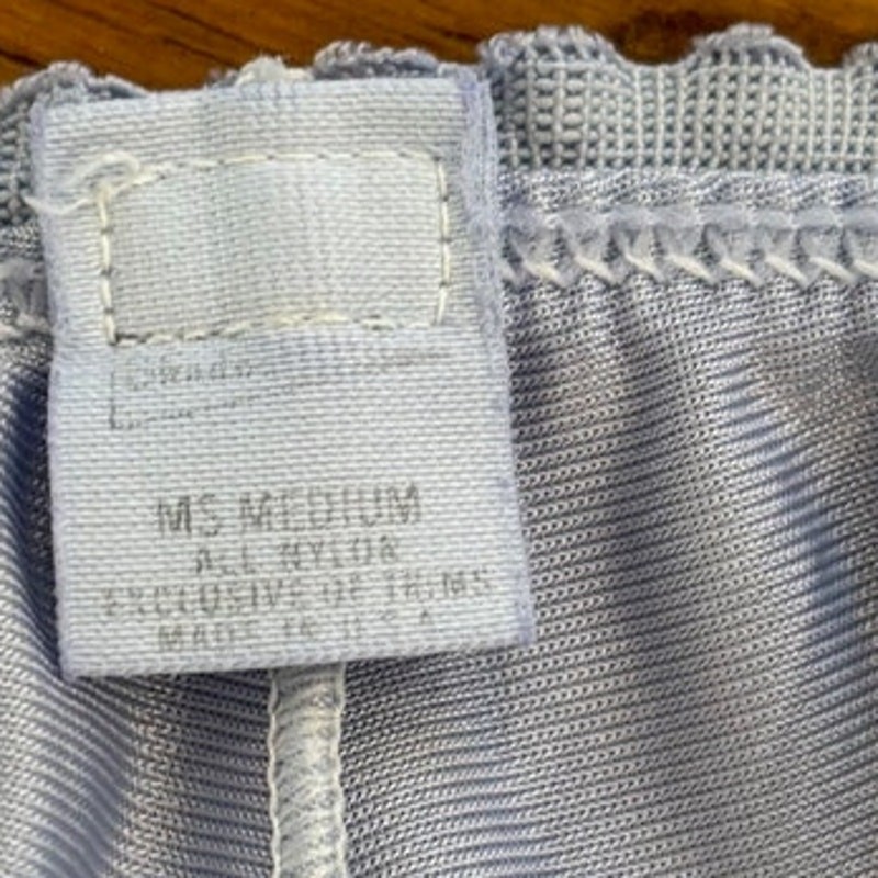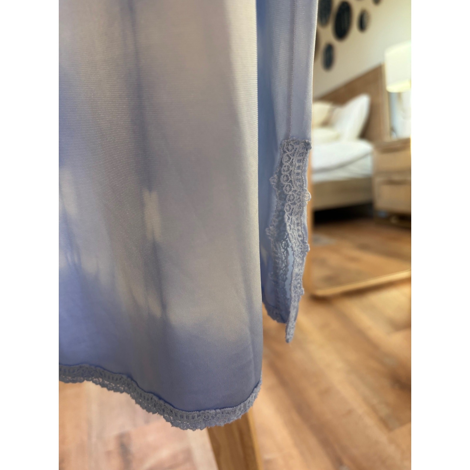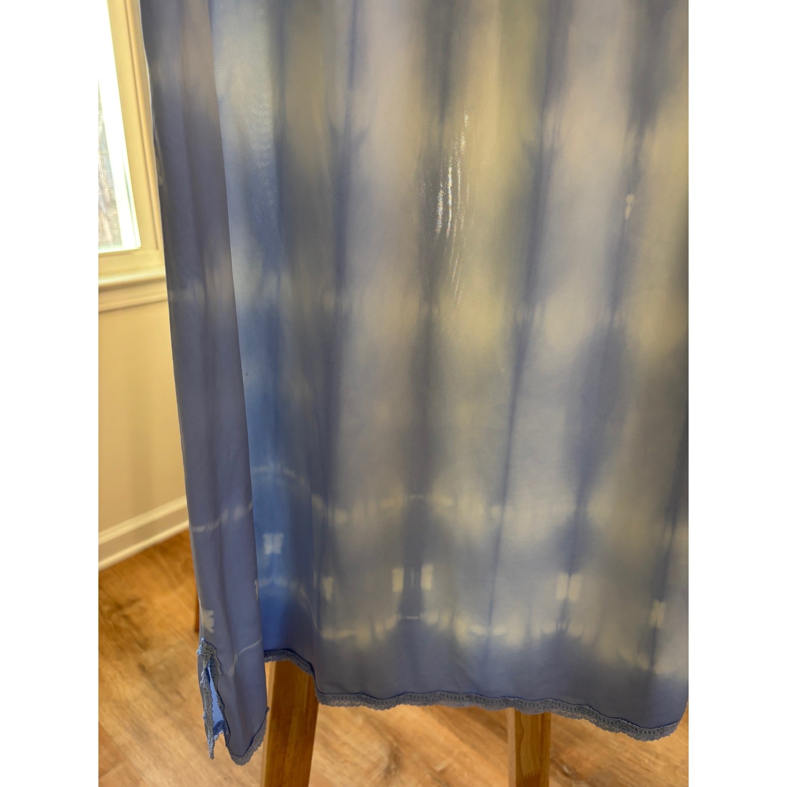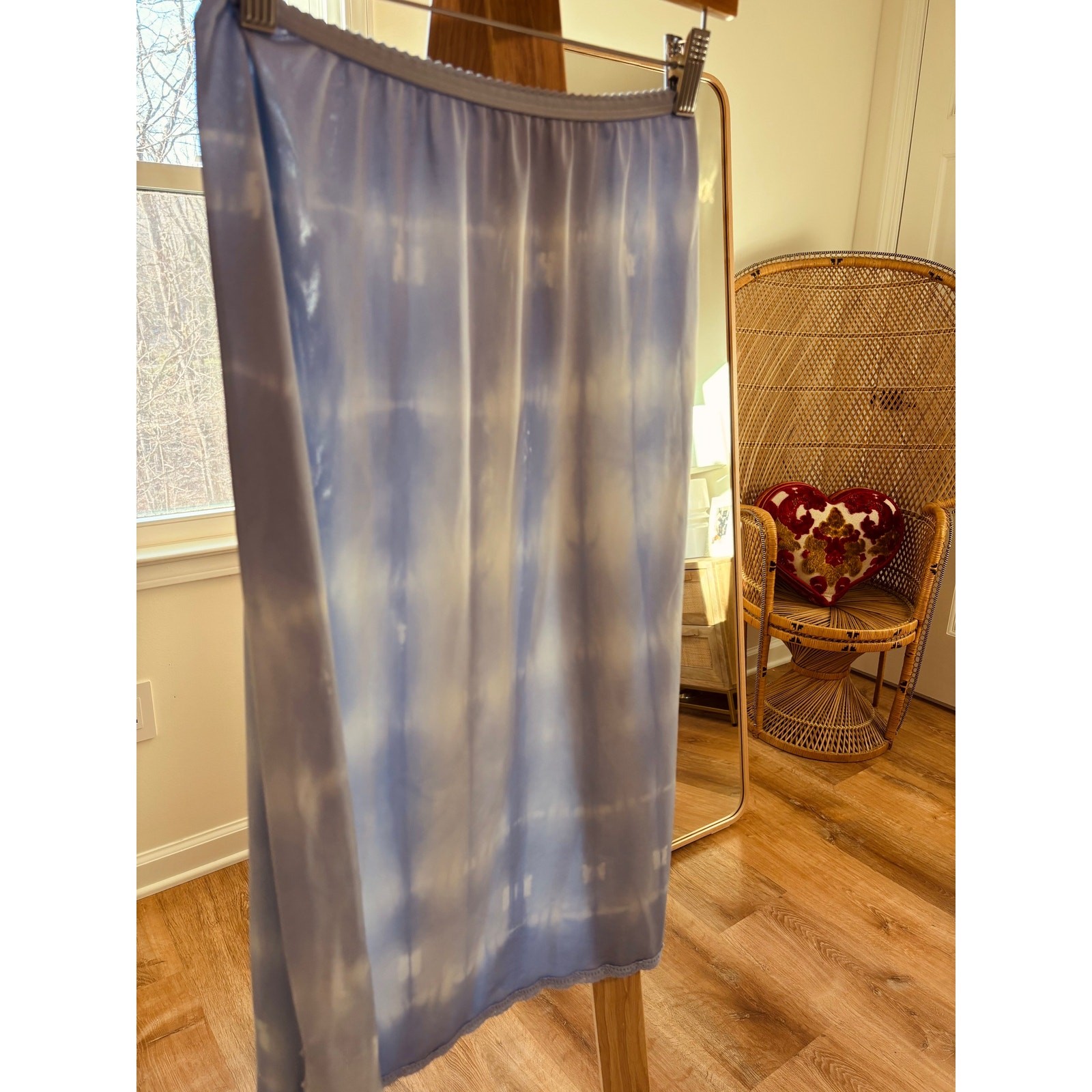 как выглядит Vintage Shadowline Blue Shibori Hand Dyed Nylon Slip Skirt Lace Slits - Medium фото