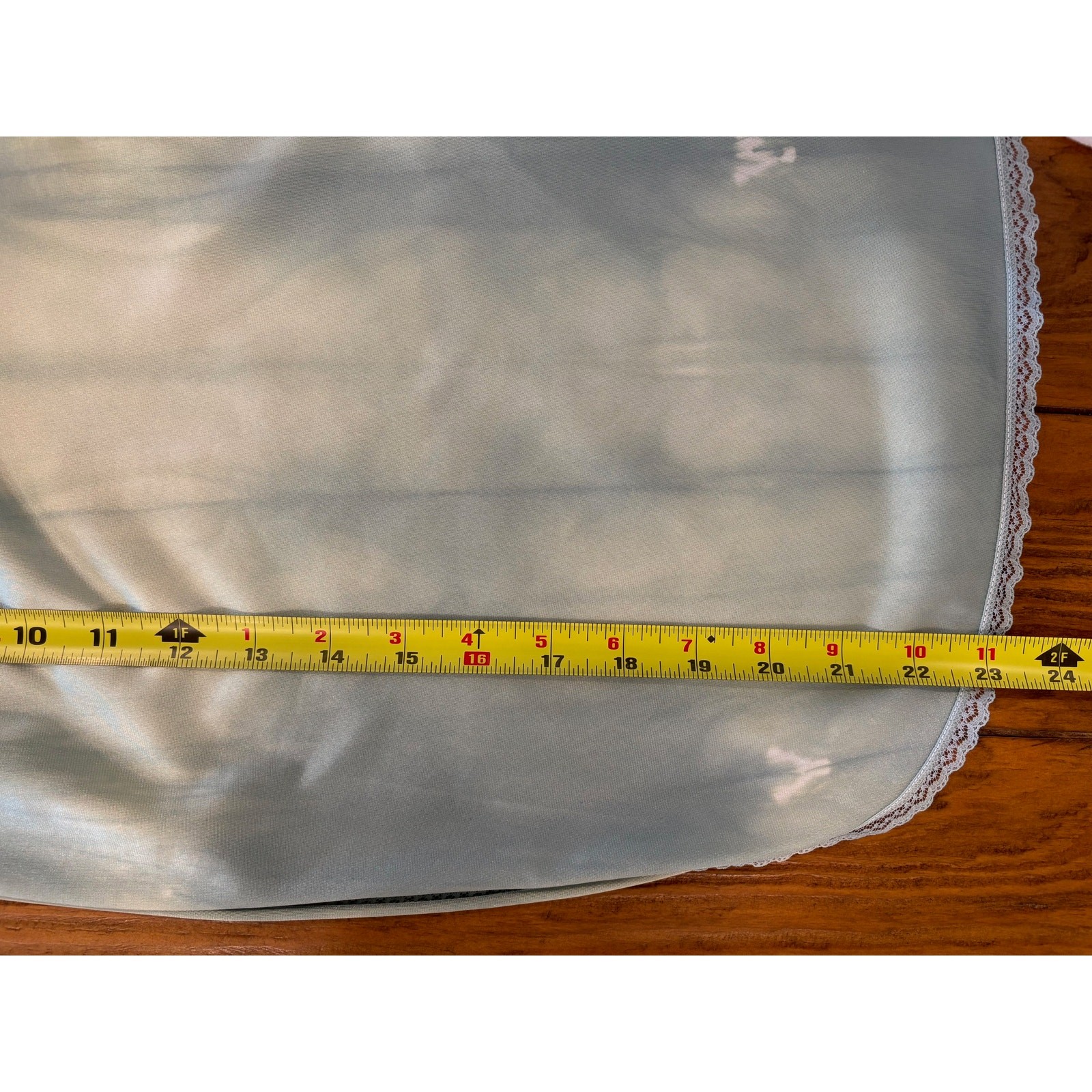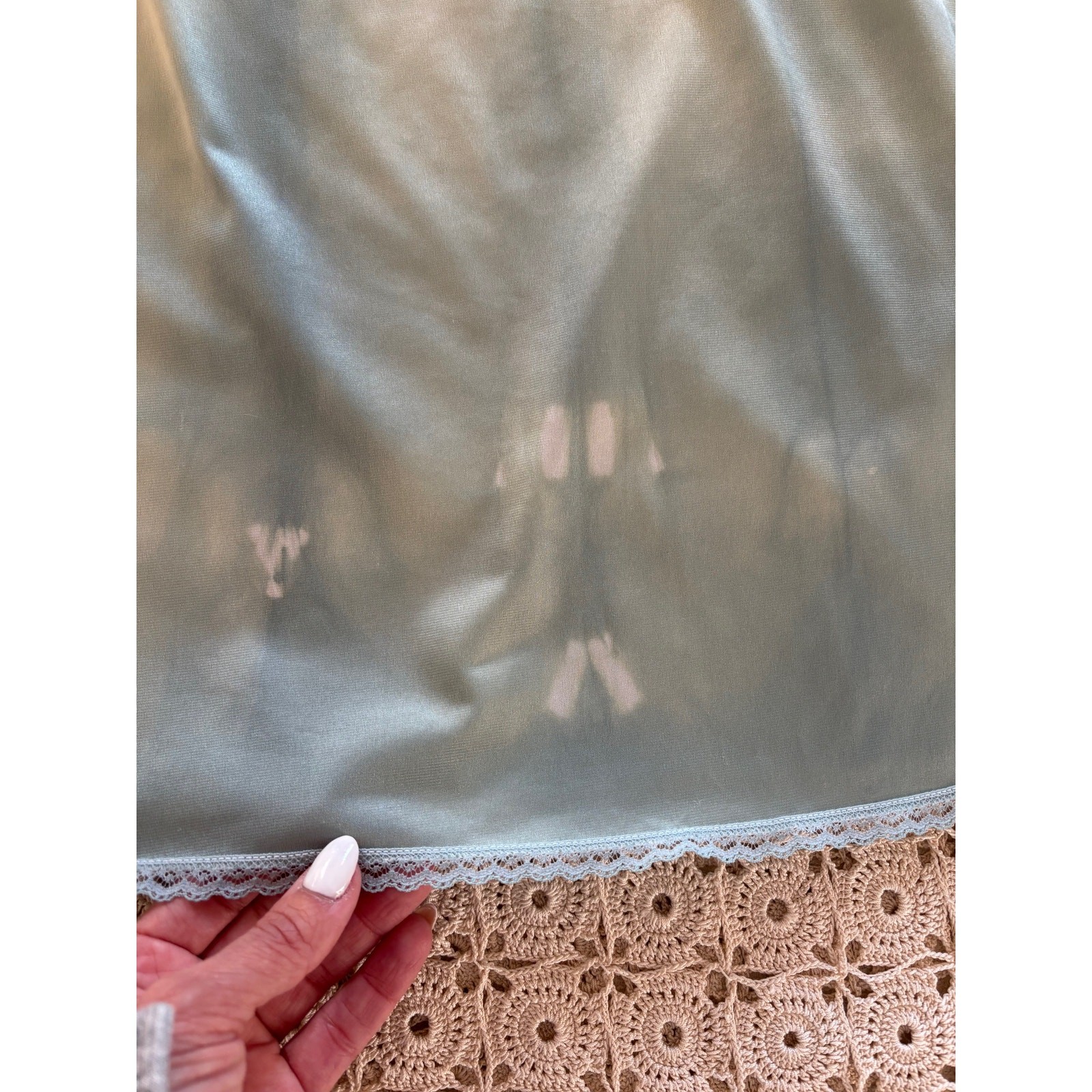как выглядит Teal Vintage Vanity Fair Shibori Hand Dyed Slip Skirt with Lace Slit Medium фото