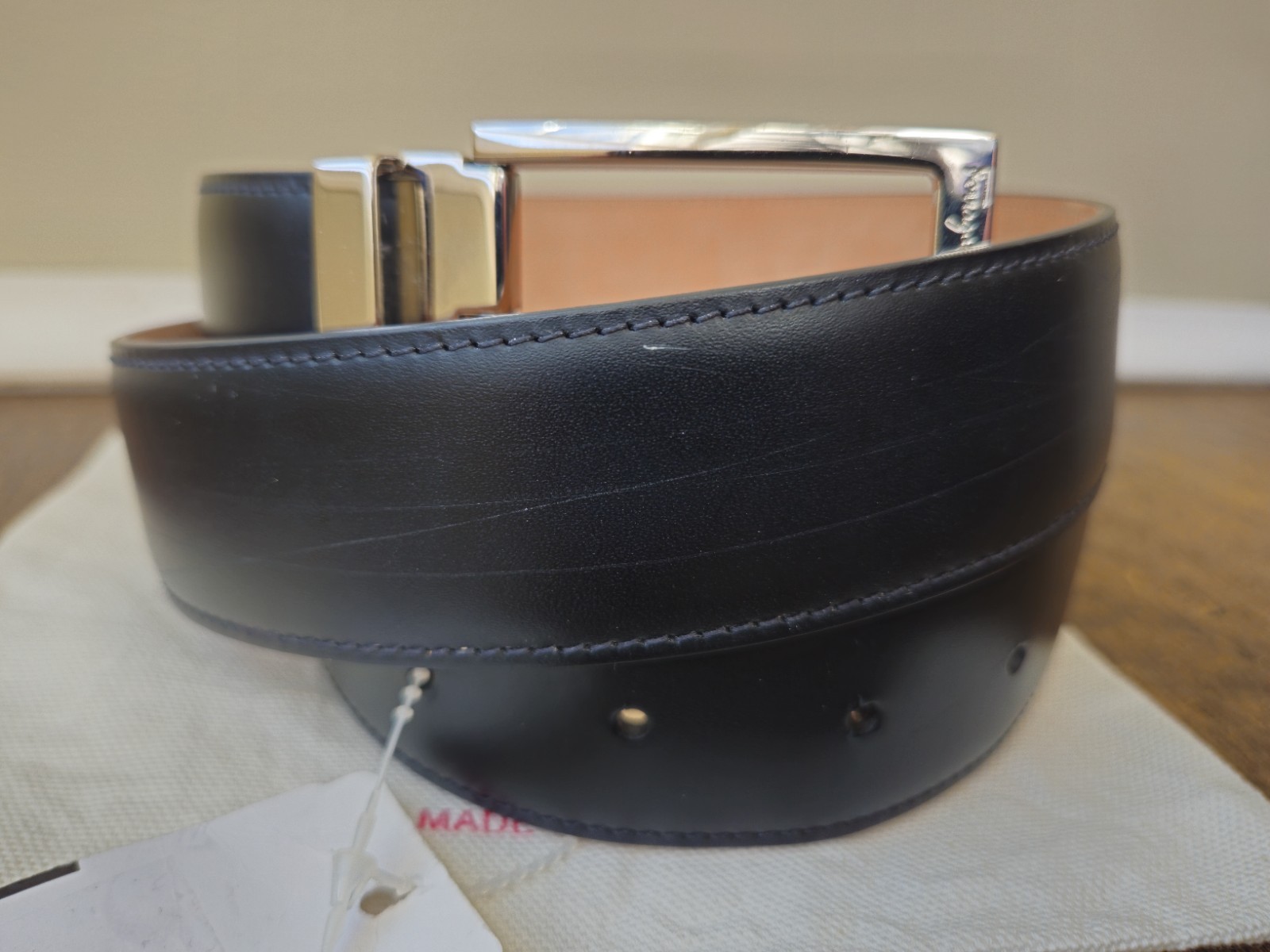 как выглядит Salvatore Ferragamo Mens Black Adjustable Cut to Size Smooth Leather Logo Belt фото