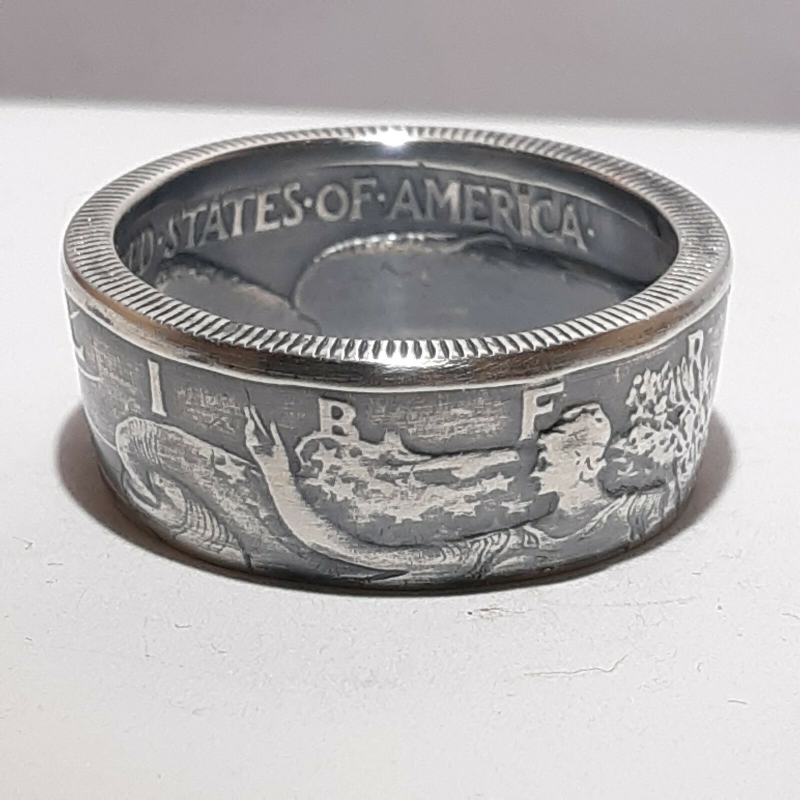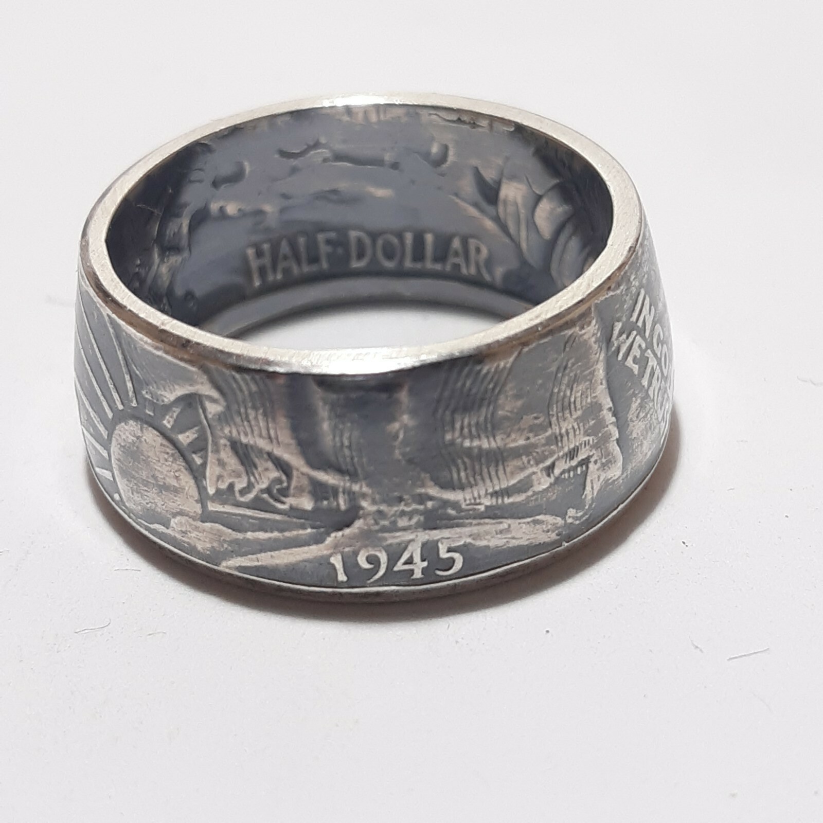 как выглядит Silver 1946 Size 8 thru 15 Walking Liberty Half Dollar coin ring 90 silver фото