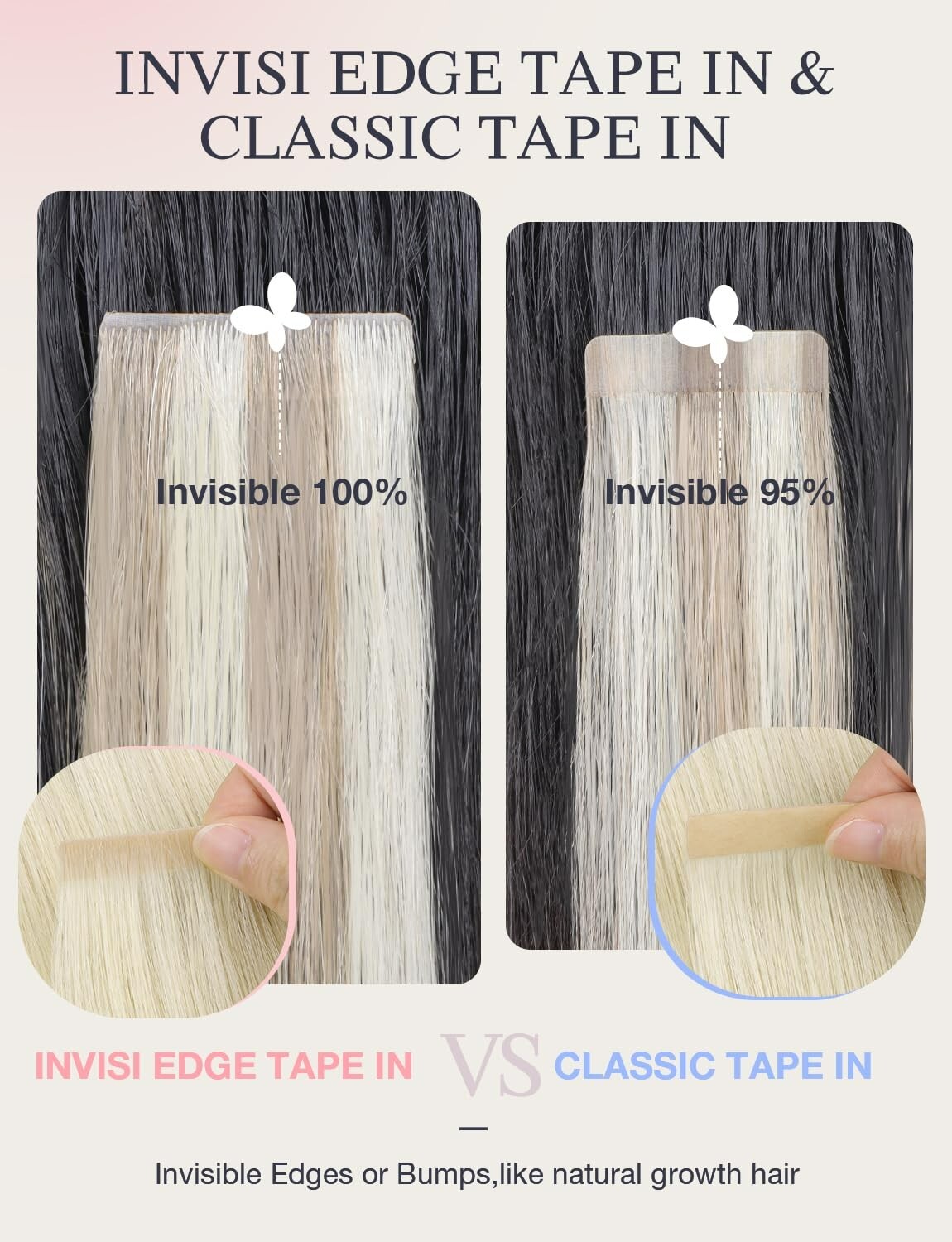 DOORES Tape in Human Hair Extensions 10 Invisi 10 Classic Platinum Blonde 20In