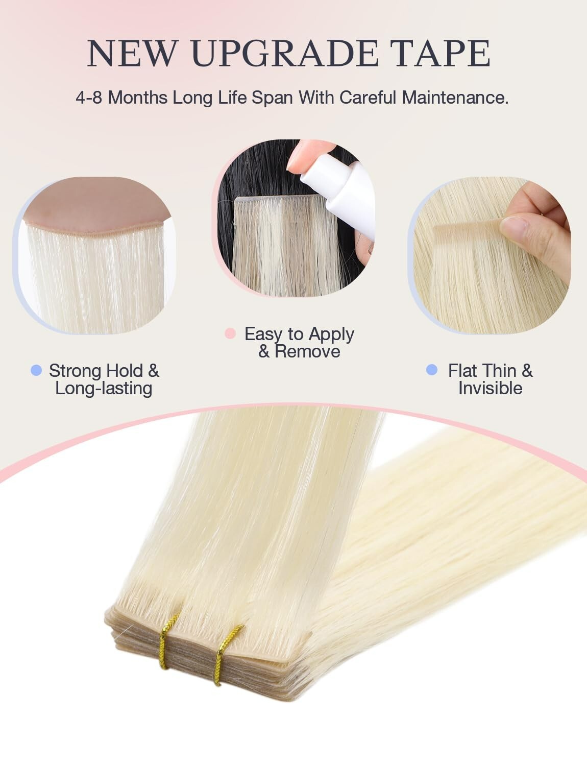 как выглядит DOORES Tape in Human Hair Extensions 10 Invisi 10 Classic Platinum Blonde 20In фото