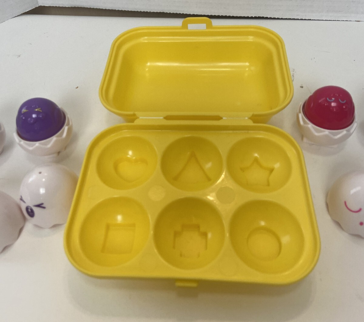 как выглядит VTG Tomy Hide N Squeak Eggs Carton Shape Color Sorting Toy 1993 Complete фото