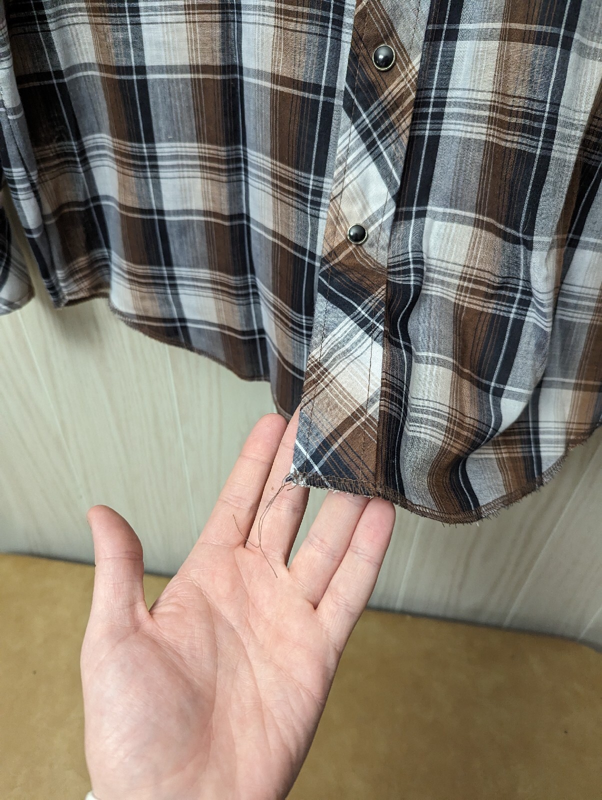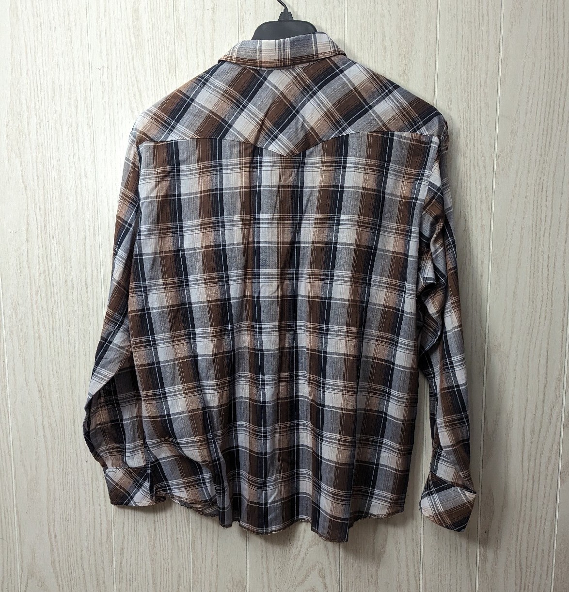 как выглядит Vintage 70s USA Wrangler Pearl Snap Western Shirt XL Brown Plaid Rainbow Tag фото