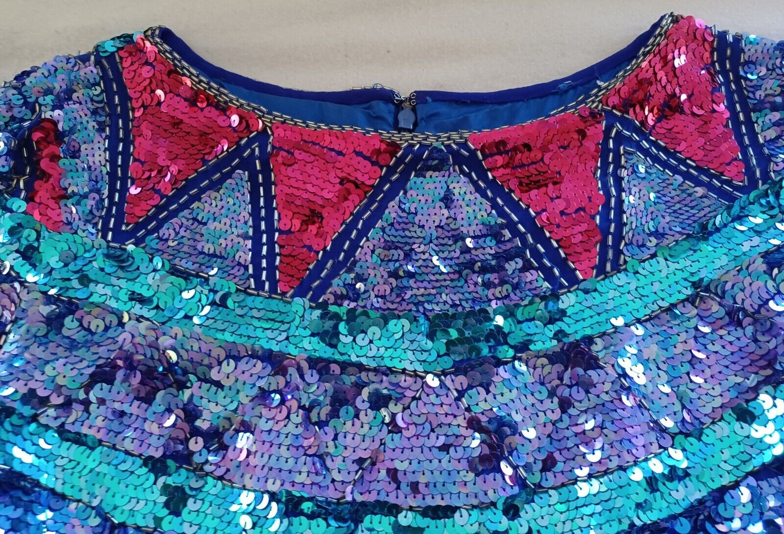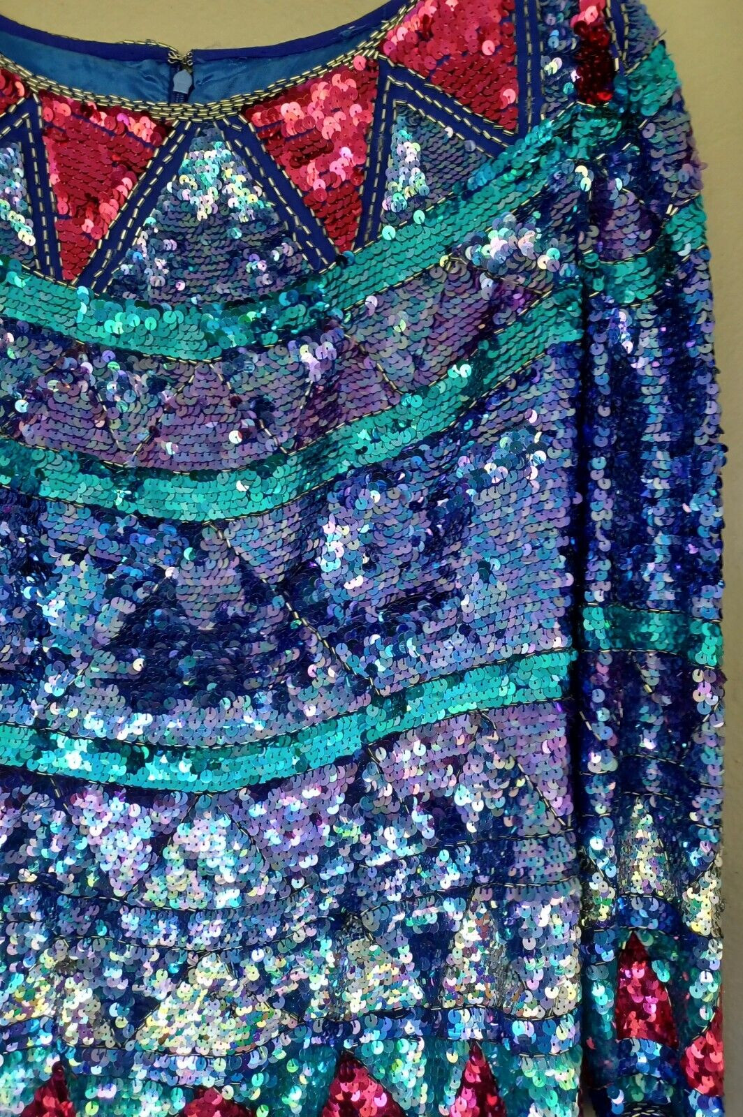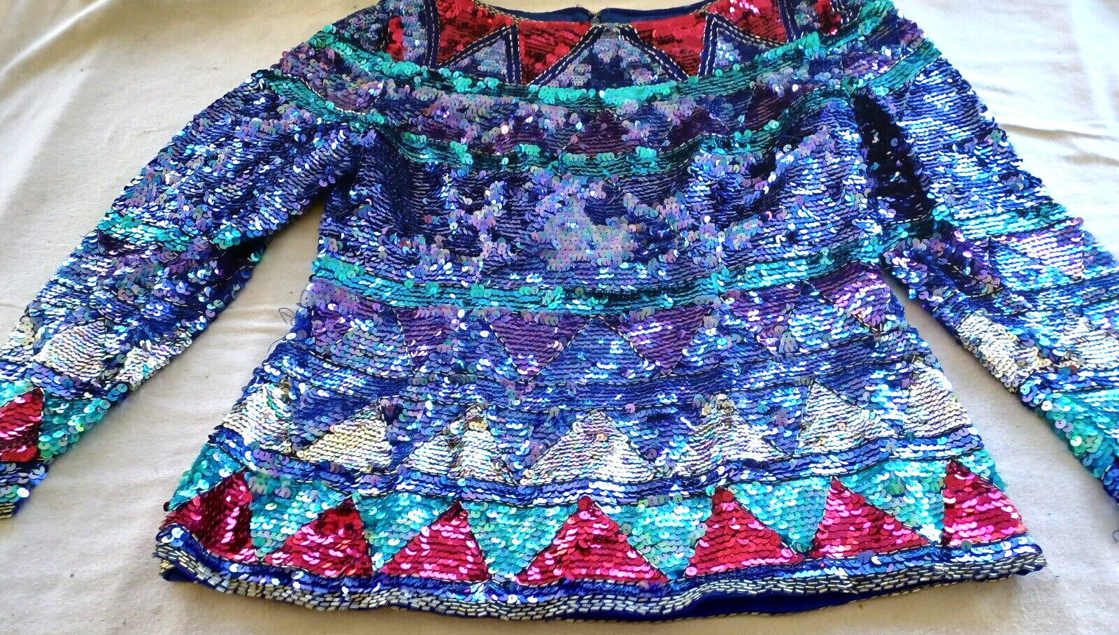 как выглядит Rainbow jewel blouse sequin Vintage Silk Sequined 60