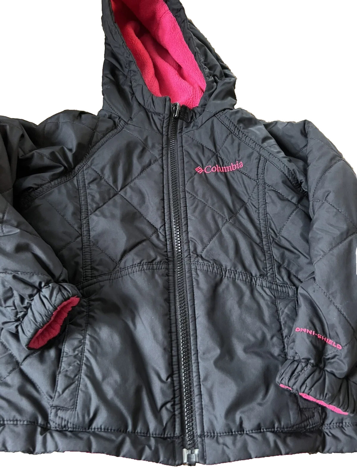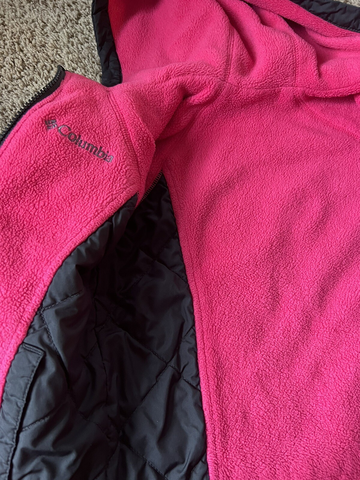 Columbia Hooded Jacket Girls Size 4/5 Black Pink Pockets Reversible OmniTech