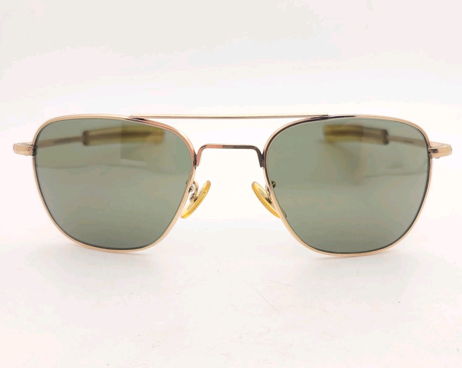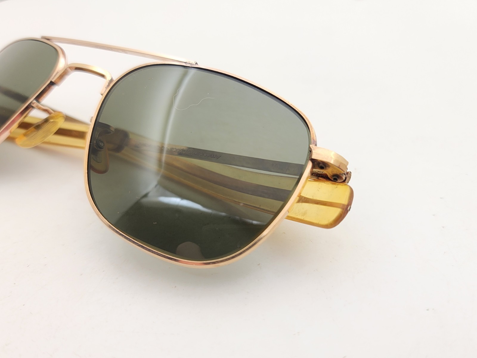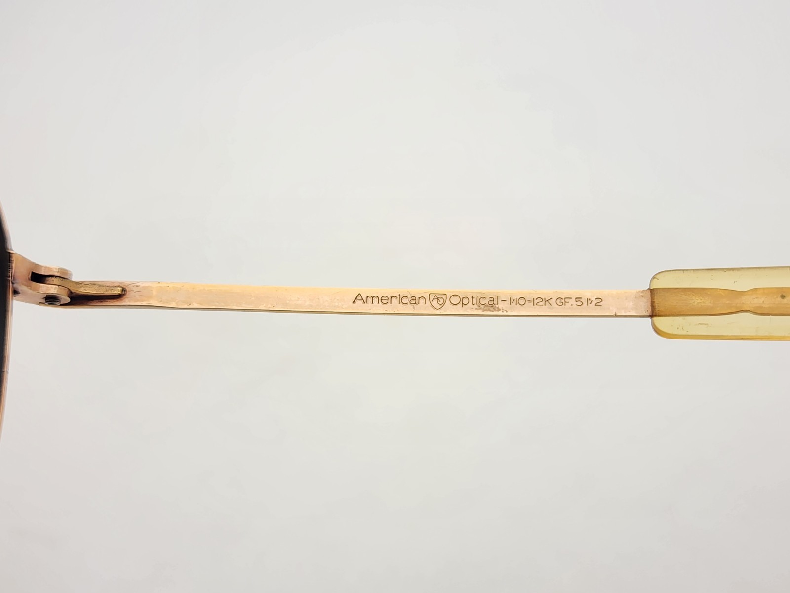 как выглядит Vintage American Optical AO Bayonet Temples Aviator 1/10 12k Yellow GF 5 1/2 фото