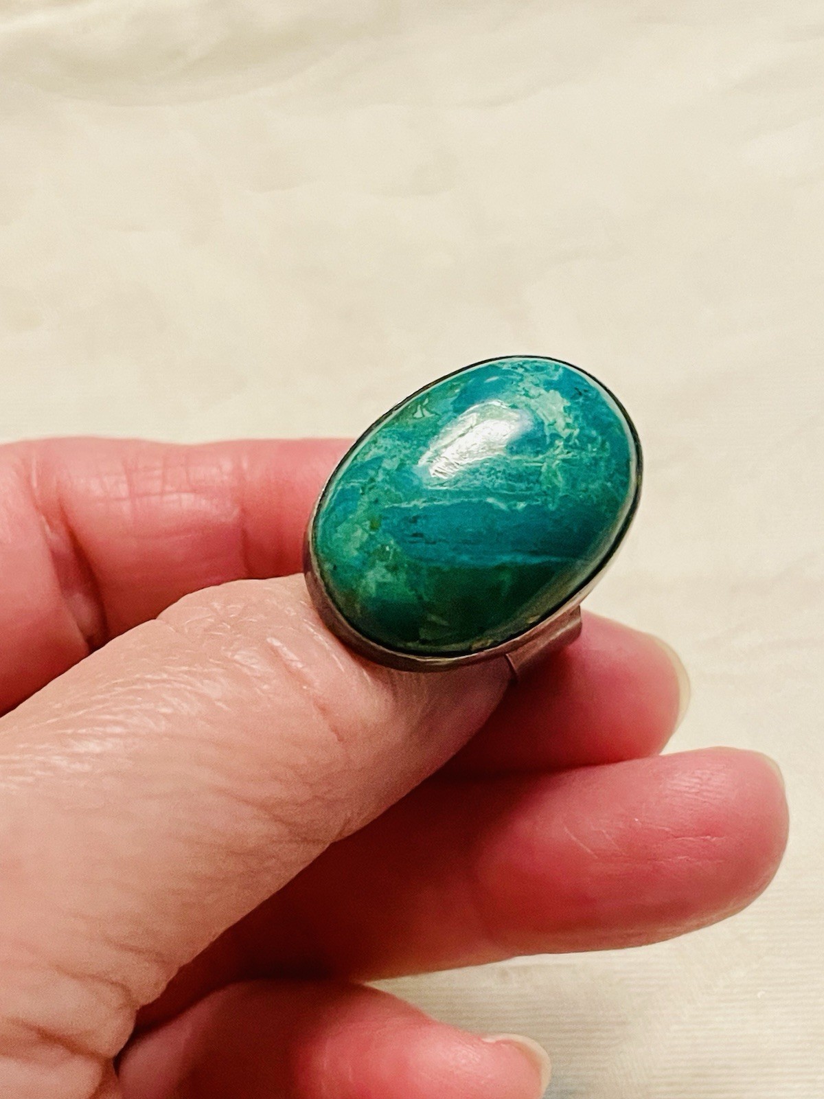 как выглядит Vtg Big Israel 925 Sterling Green Turquoise Ring Size 7 Adjustable 9.22grams фото