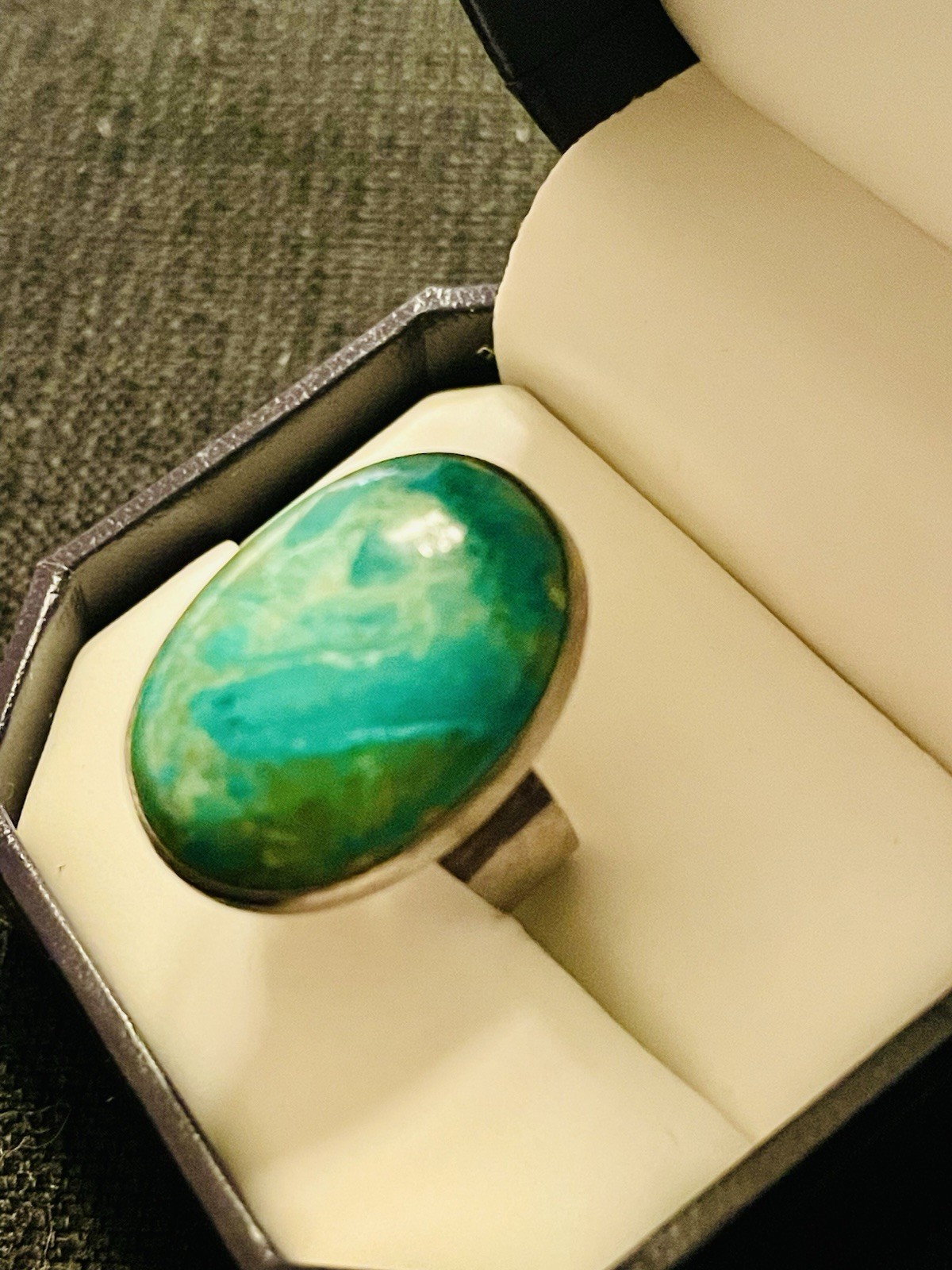 Vtg Big Israel 925 Sterling Green Turquoise Ring Size 7 Adjustable 9.22grams