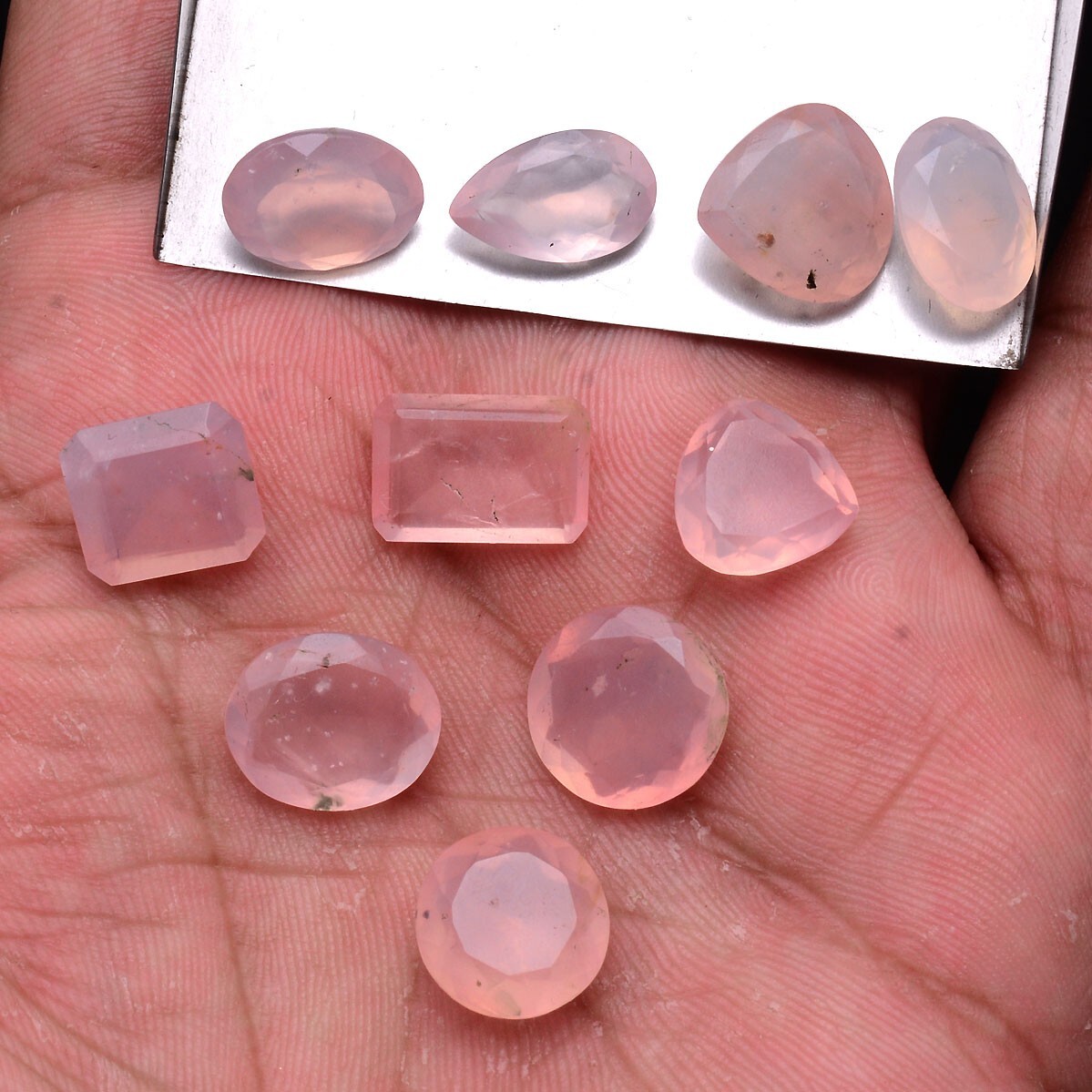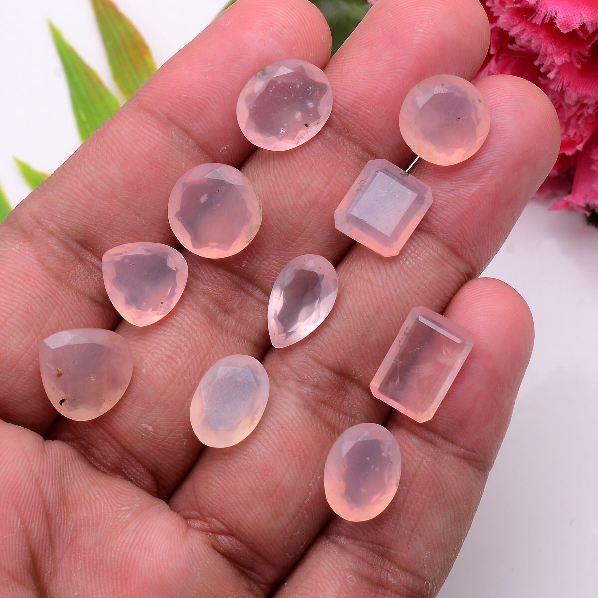 как выглядит 10 Pcs Natural Rose Quartz 11mm-13mm Faceted Cut Untreated Loose Gemstones Lot фото