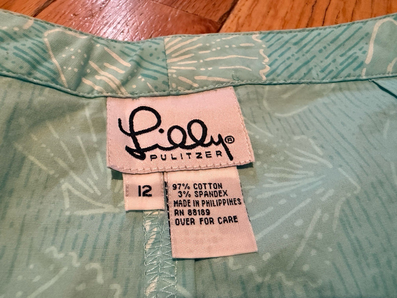 как выглядит VTG Lilly Pulitzer Seashell Print Pants Light Blue Womens Size 12 Ankle Straight фото