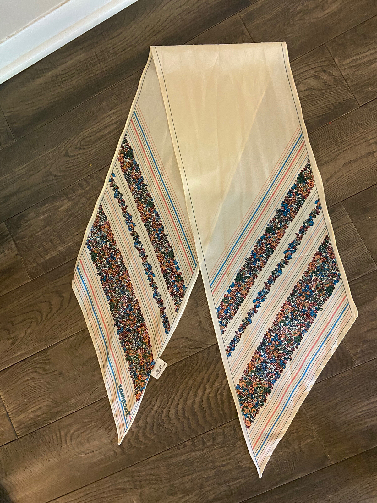 как выглядит VTG Jacqmar Neck Scarf Floral Stripe Long Skinny Italy Mod 100 Polyester фото