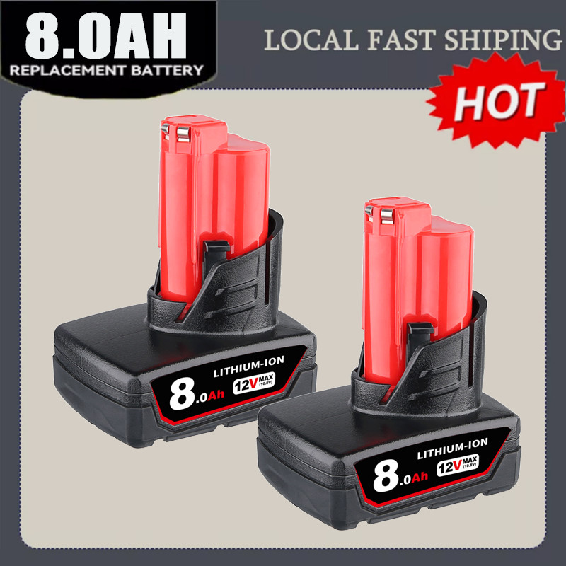 2Pack 8.0Ah Battery for M12 For Milwaukee LITHIUM Extended Capacity 48-11-2460