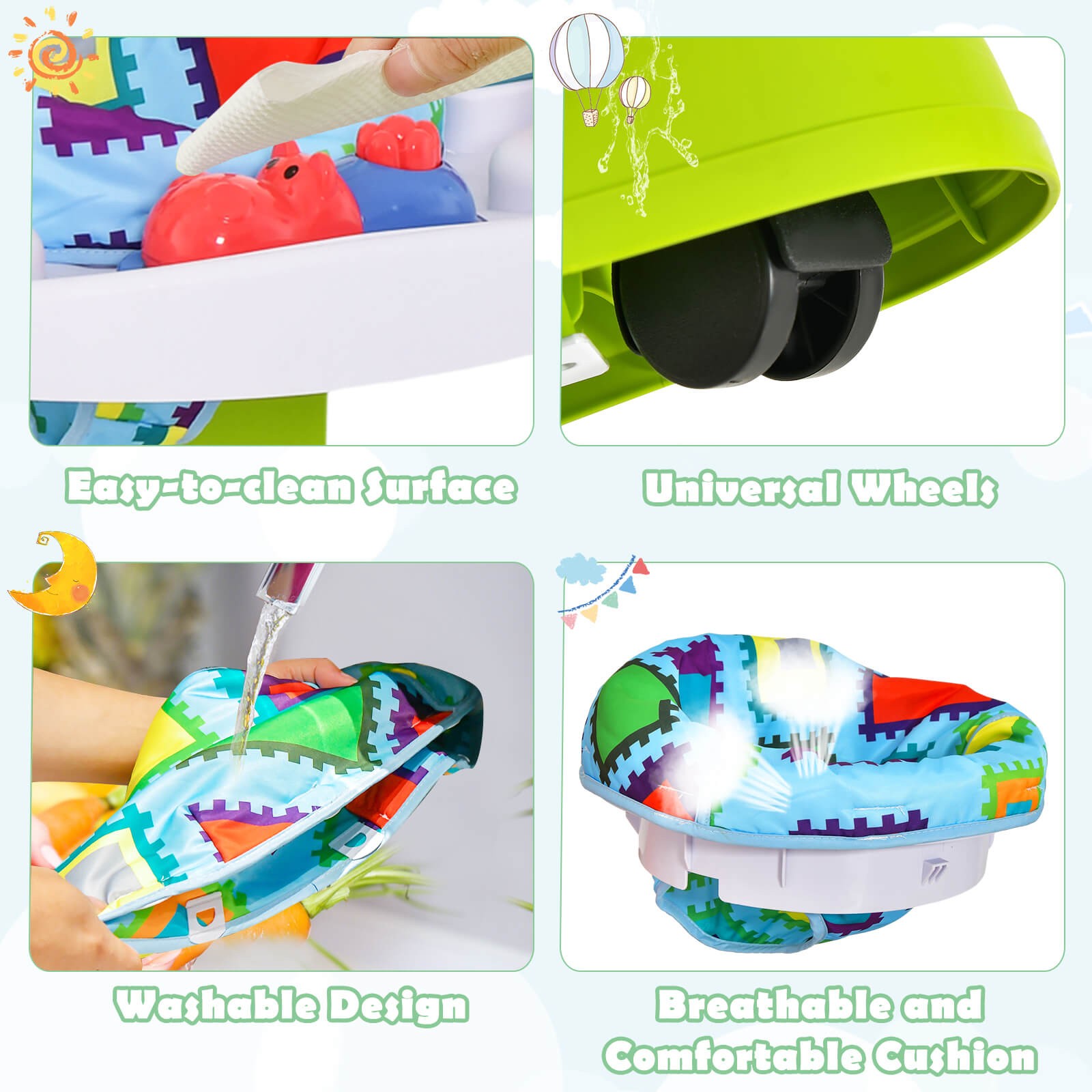 4-in-1 Baby Bouncer Activity Adjustable Center Activity Saucer w/ Music Box