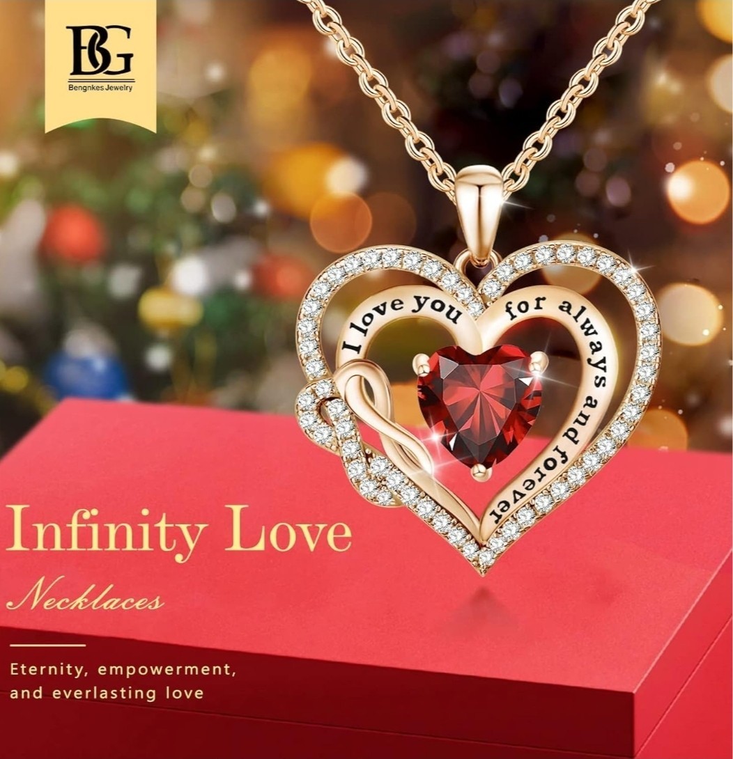 925 Sterling Silver Forever Love Heart Birthstone Pendant Necklaces for...