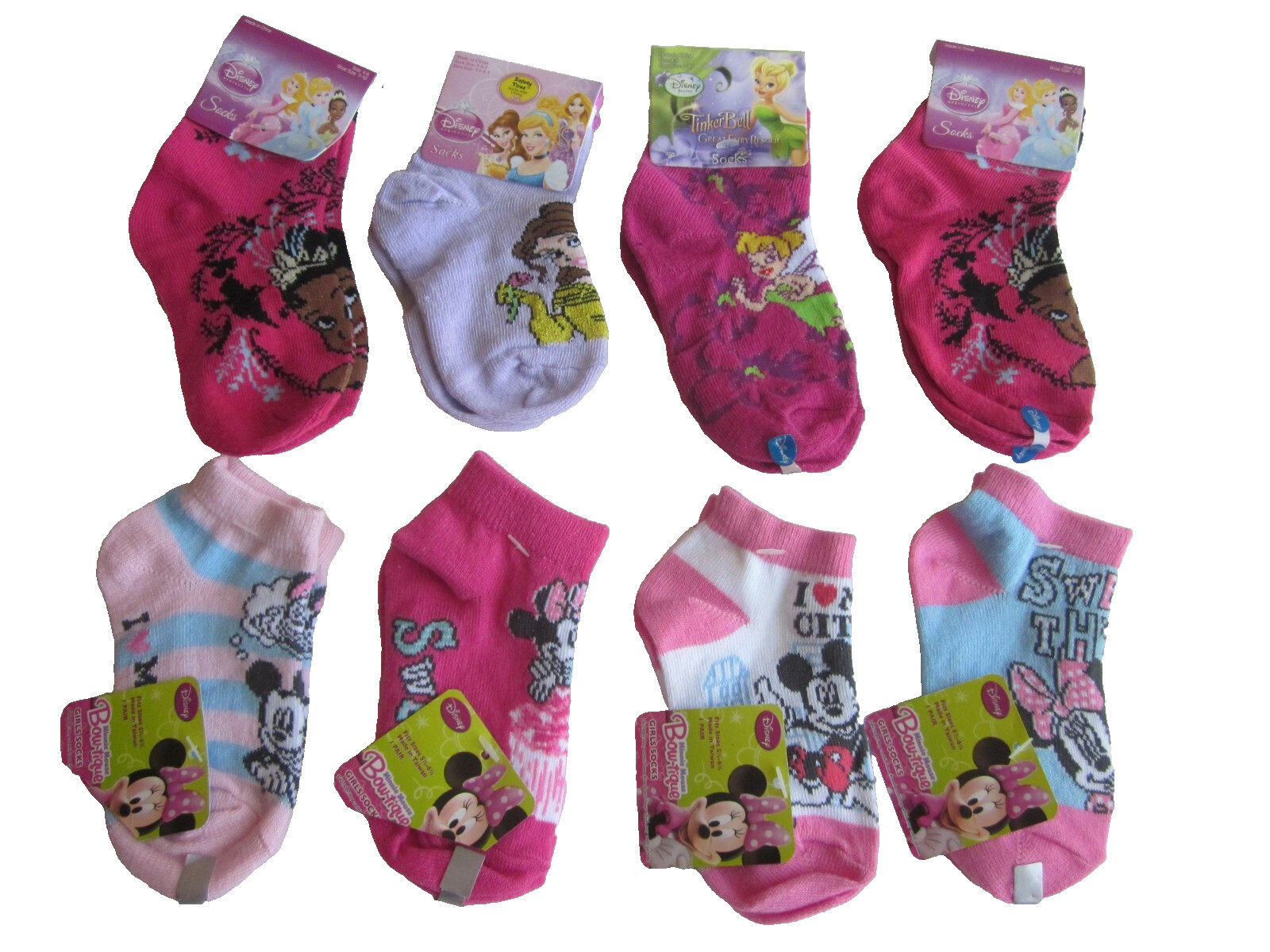 New DISNEY Princess/Fairies etc Girls Socks 8 pairs Size: 4-6 1/2 - 3M-2yrs