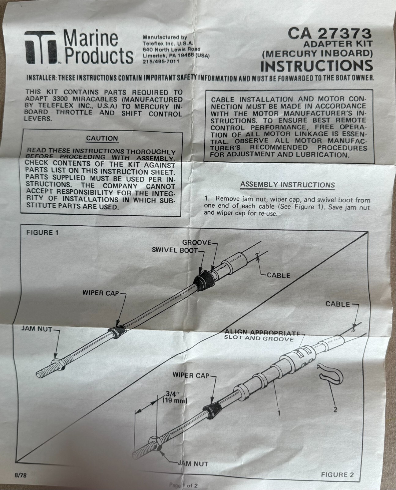 TELEFLEX MARINE PRODUCTS ADAPTER KIT PART CA27373