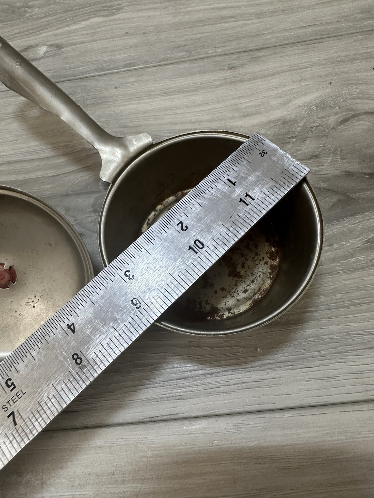 как выглядит Metal Aluminum Childs Toy Red Handle Cooking POT PAN ANTIQUE K TOY Vintage фото