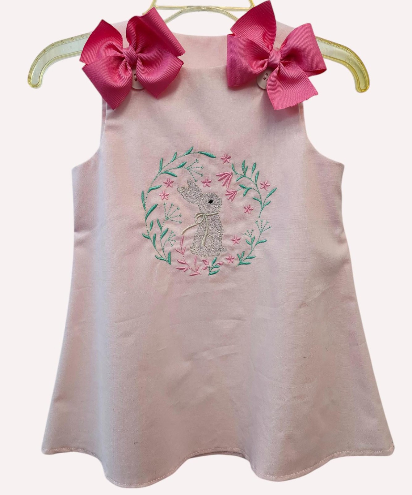 как выглядит Bunny little girl dress, Easter dress, Embroider girl dress, Bunny and flowers d фото