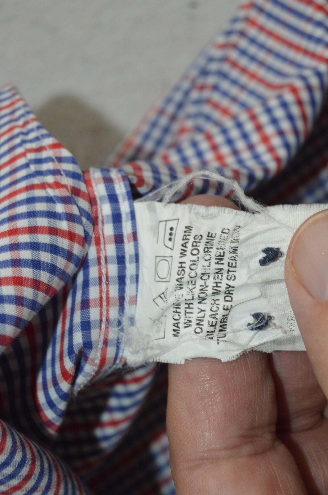как выглядит Tommy Hilfiger Men s dress Shirt Regular Fit RED-White-Blue ChecK SZ 17 34/35 - фото