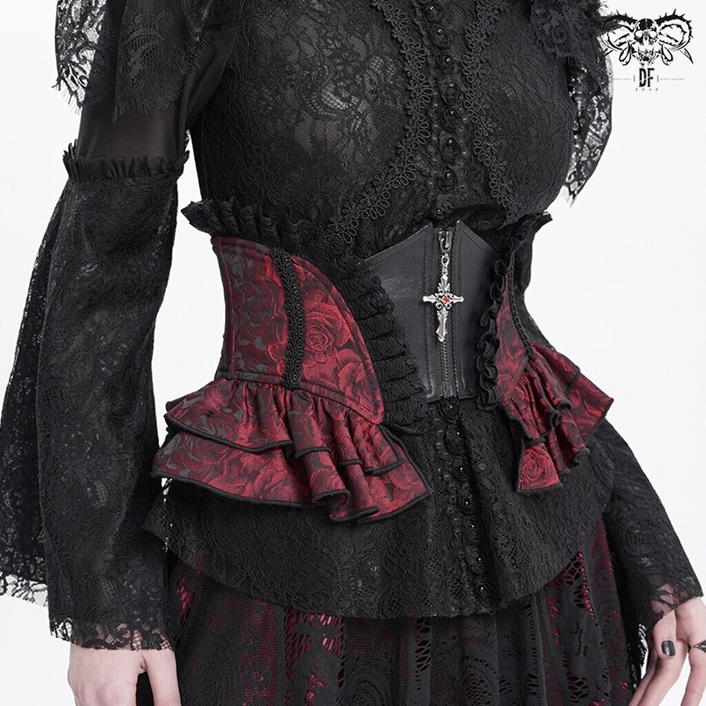 Devil Fashion Women Black Red Gothic Retro Ruffled Front Zip Underbust Waistband