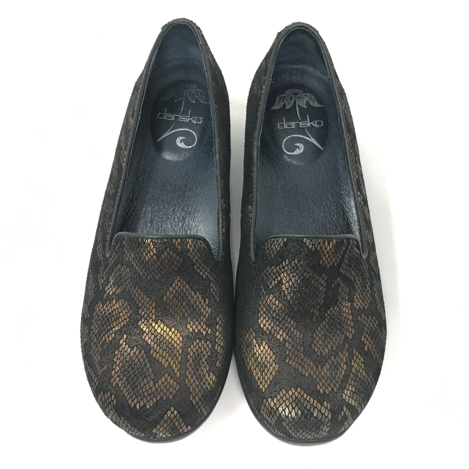 Dansko Olivia Loafers Shoes Womens Size 7.8-8 US 38 EU Black Bronze Snake Print