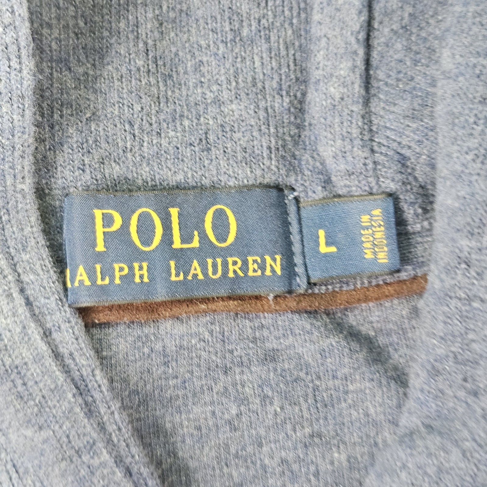 как выглядит Polo Ralph Lauren Sweater Mens Large Navy Blue Shawl Collar Elbow Patch Preppy фото