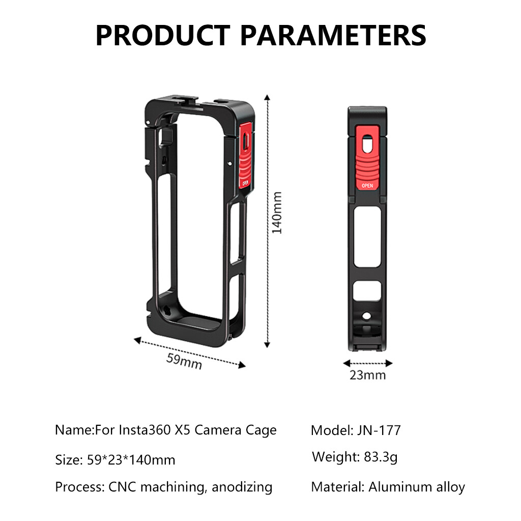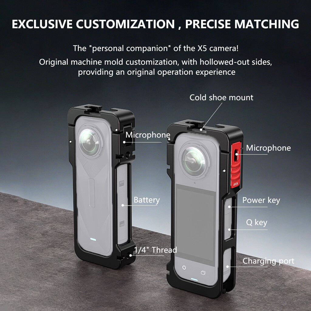 Aluminum Alloy Protective Case For Insta360 X5 Camera Cage with Cold Shoe Mount