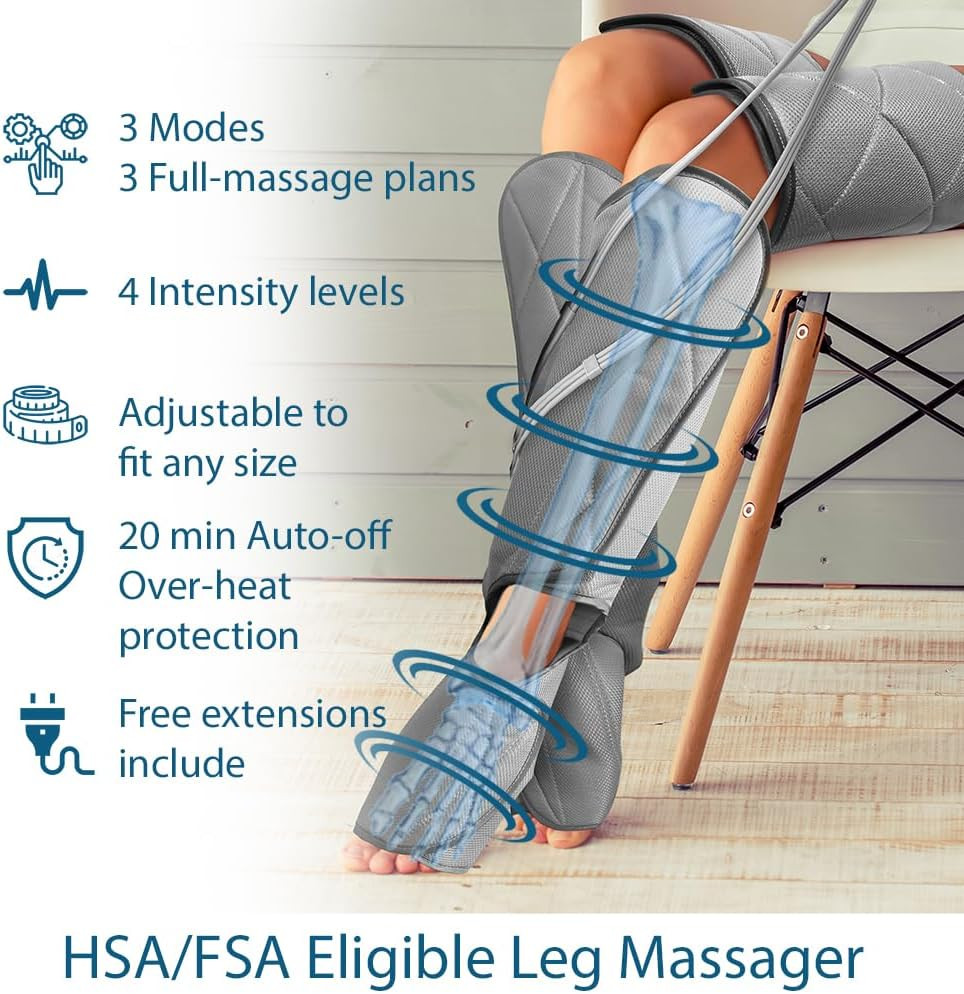Leg Massager for Circulation - Foot and Calf Massager, Air Compression Leg Wraps