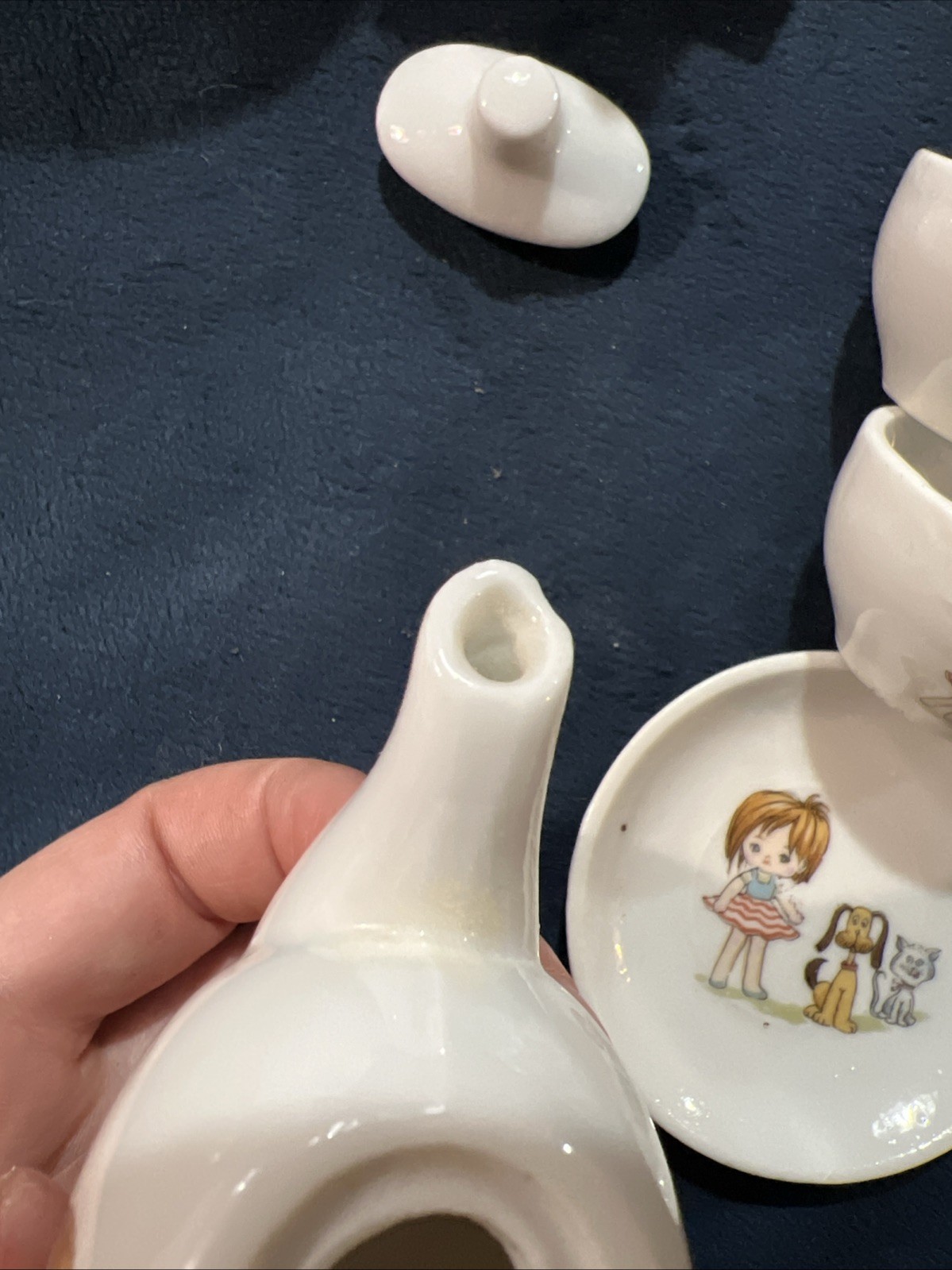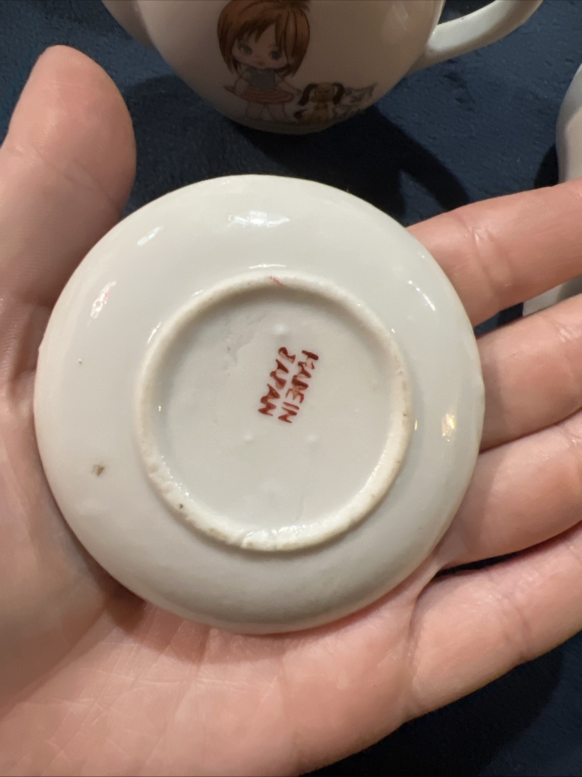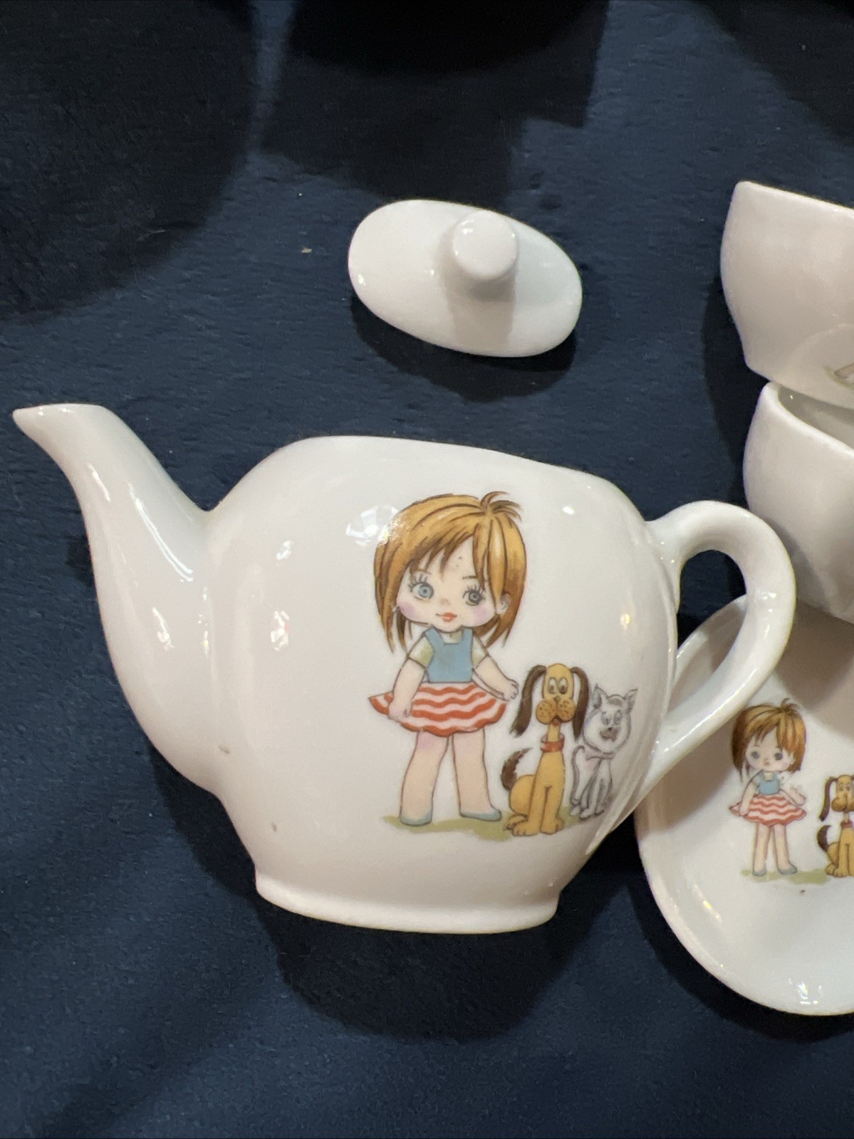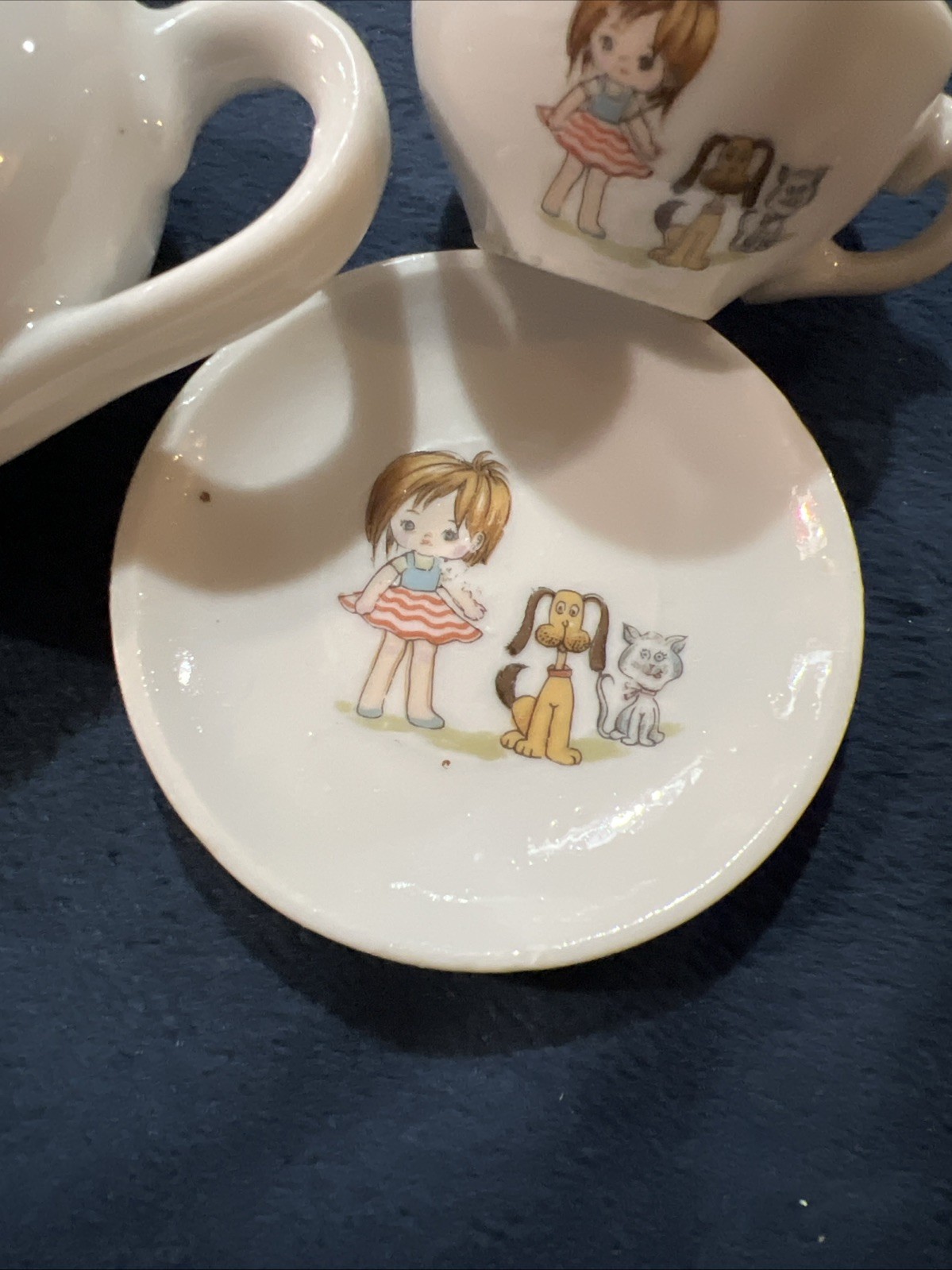 Vintage Children s Tea Set Japan Porcelain Girl Cat Dog Plate Cup Teapot