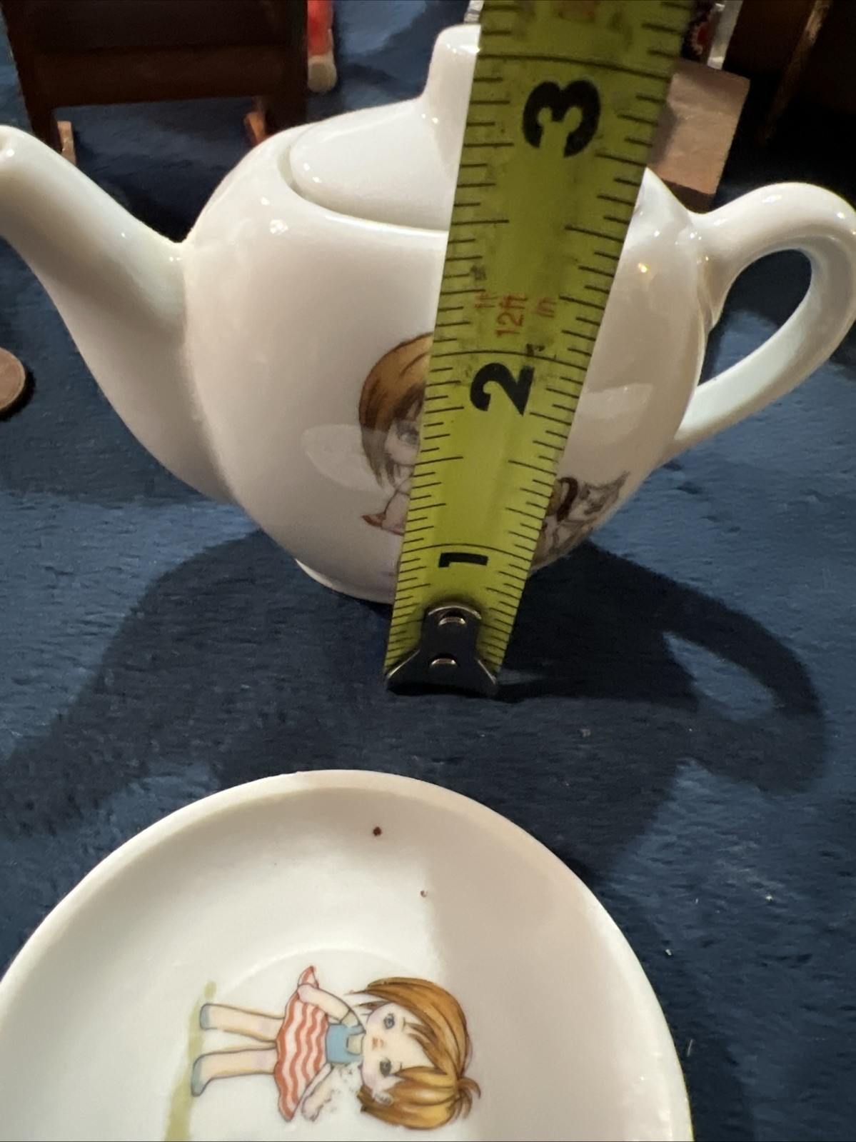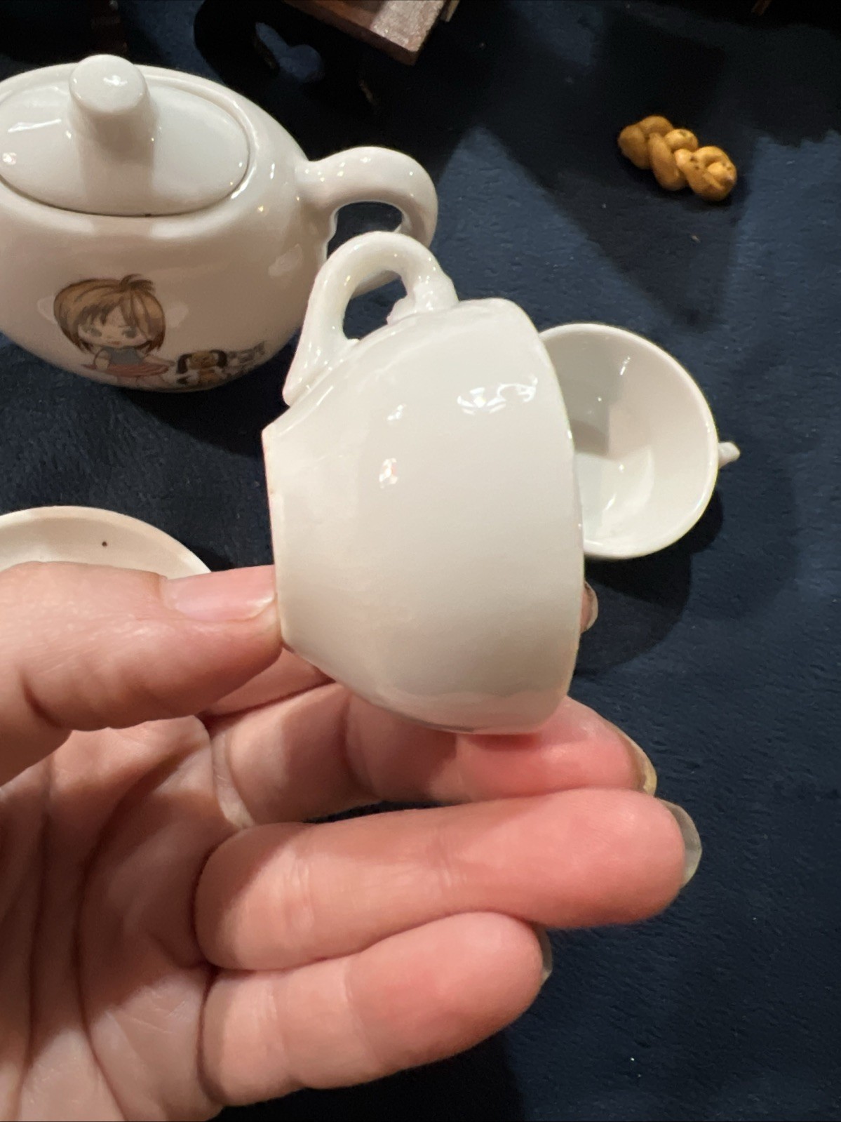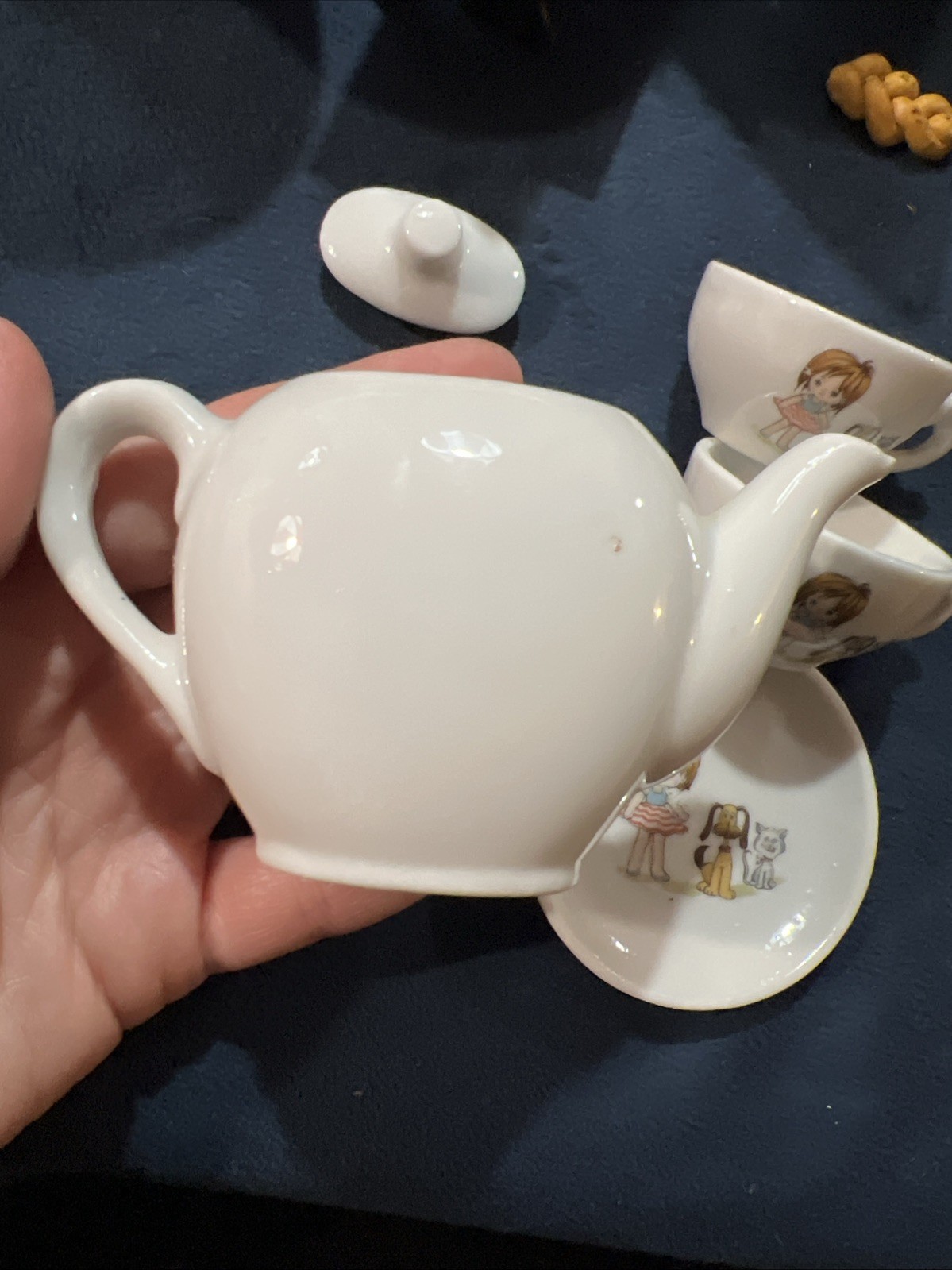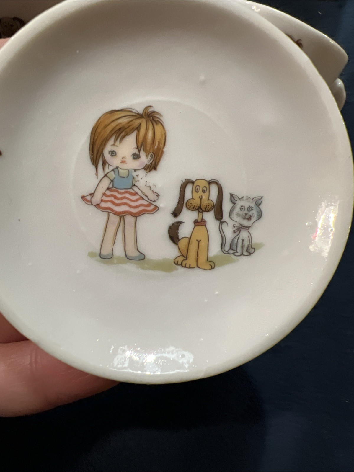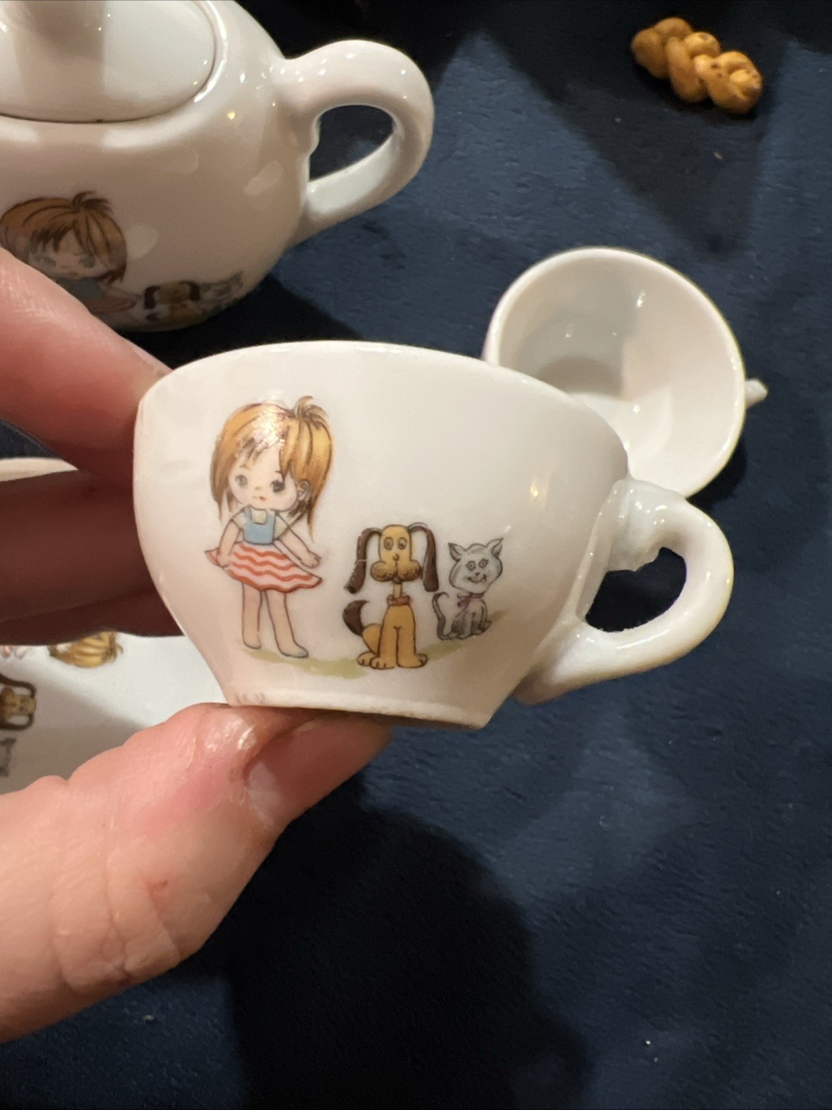 Vintage Children s Tea Set Japan Porcelain Girl Cat Dog Plate Cup Teapot