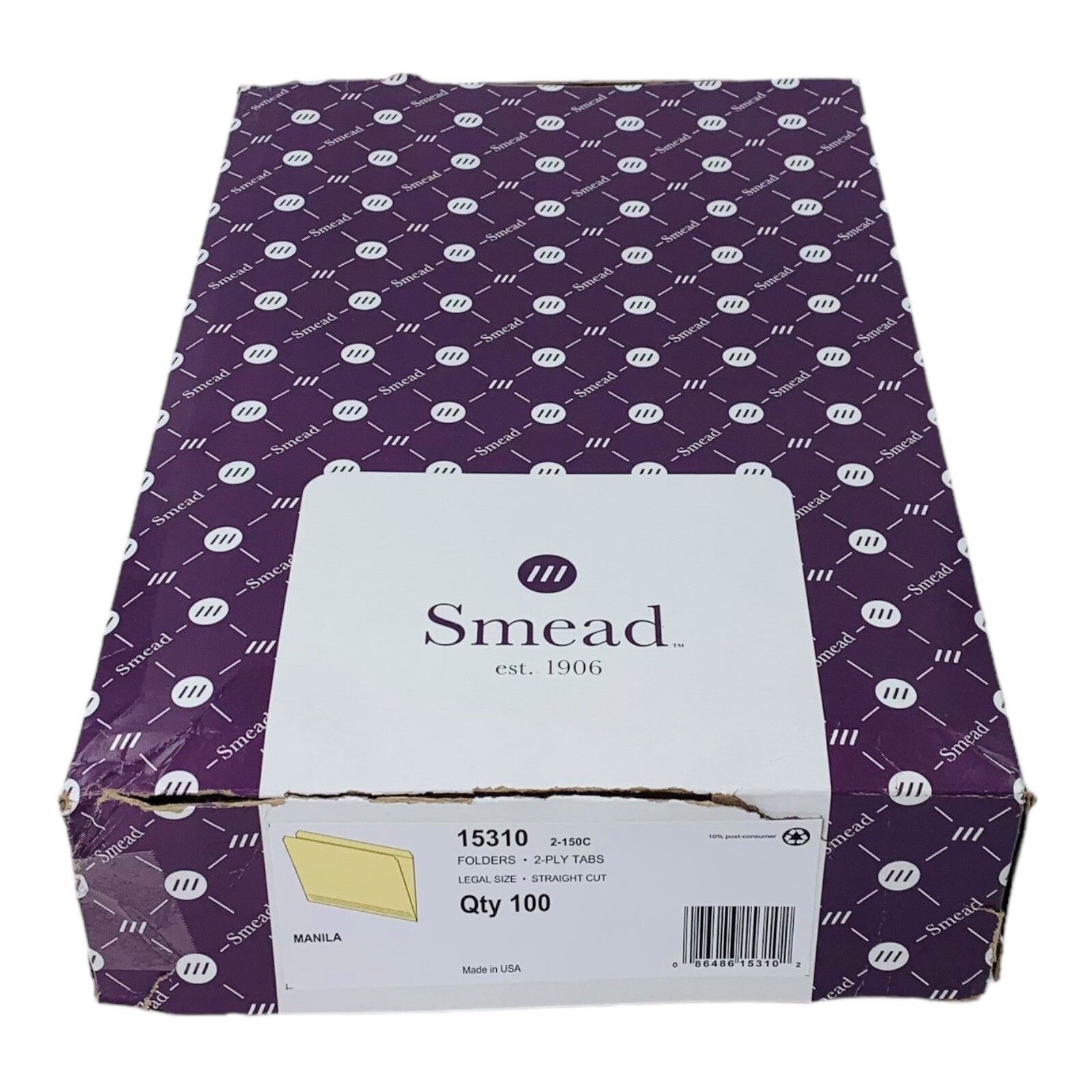 100 Smead Folders Legal Size Manila Straight Cut File Folders 2-Ply Tabs