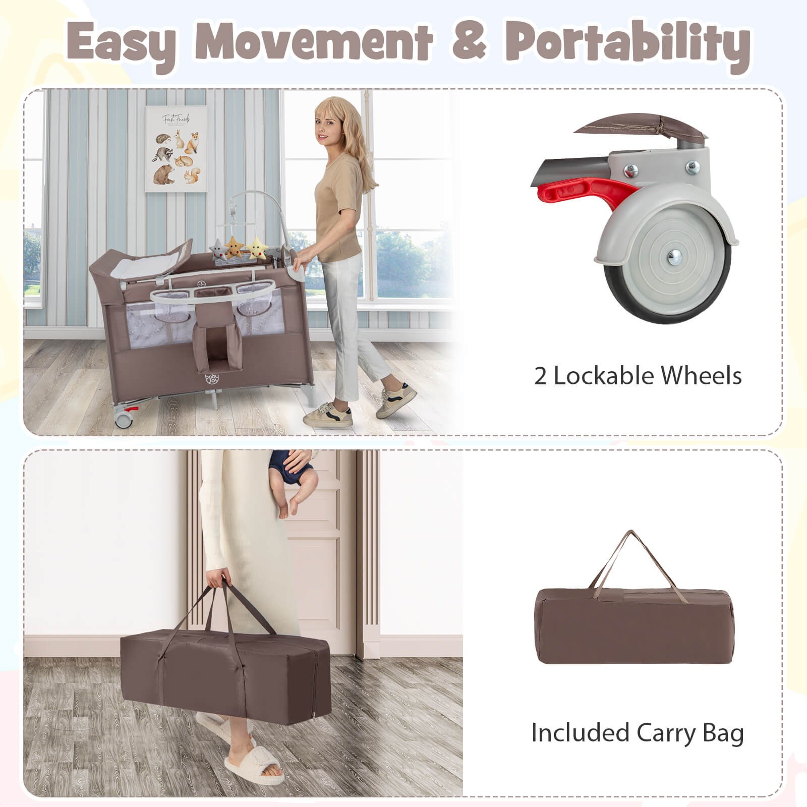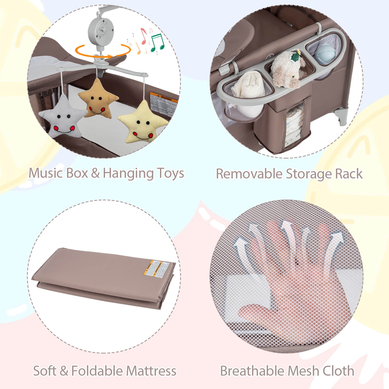 5-in-1 Portable Pack and Play w/ Diaper Changing Table Playpen Bedside Sleeper