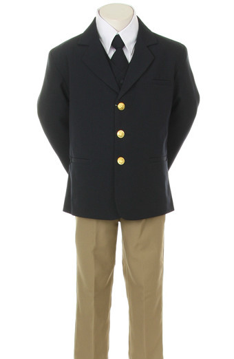 NEW Infant Boy Toddler Tuxedo Formal Party Wedding Navy Jacket Khaki Pants Suit