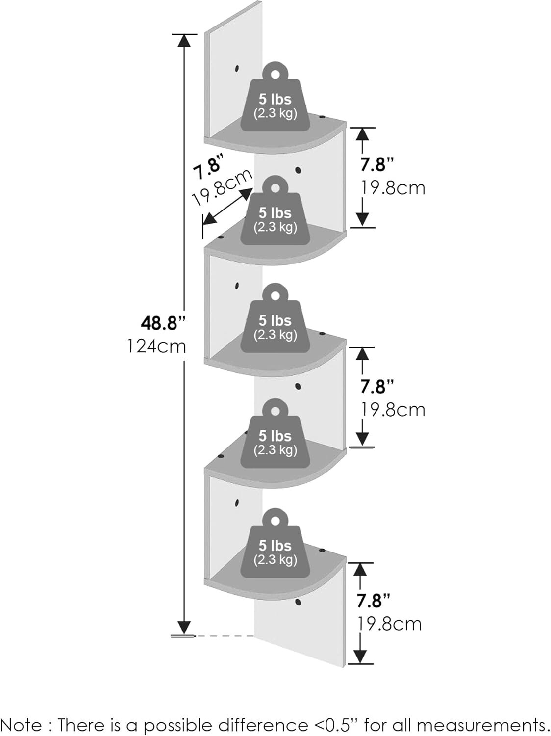 5-Tier Floating Corner Shelf, Wall Mount Shelves for Storage and Display, Columb