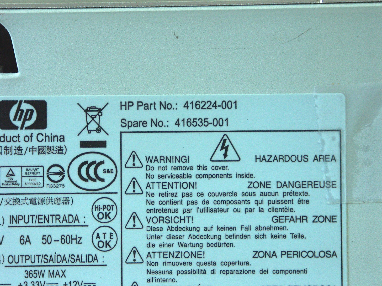 как выглядит HP 416224-001 365W Power Supply, PS-6361-4HFD working pull from HP DC7700 фото