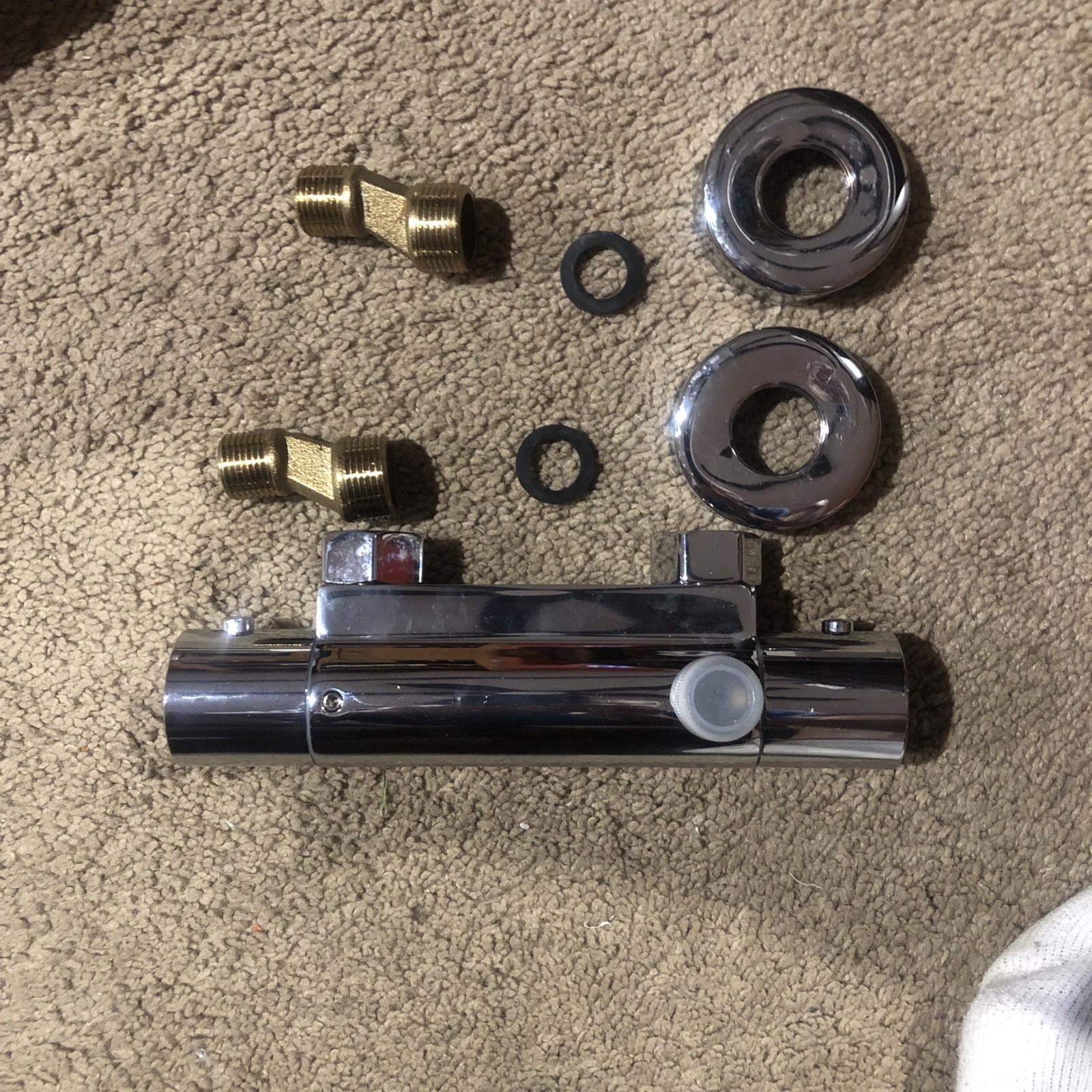 Items Included: Thermostatic tub faucet, rubber washers, brass adapters, chromed escutcheons