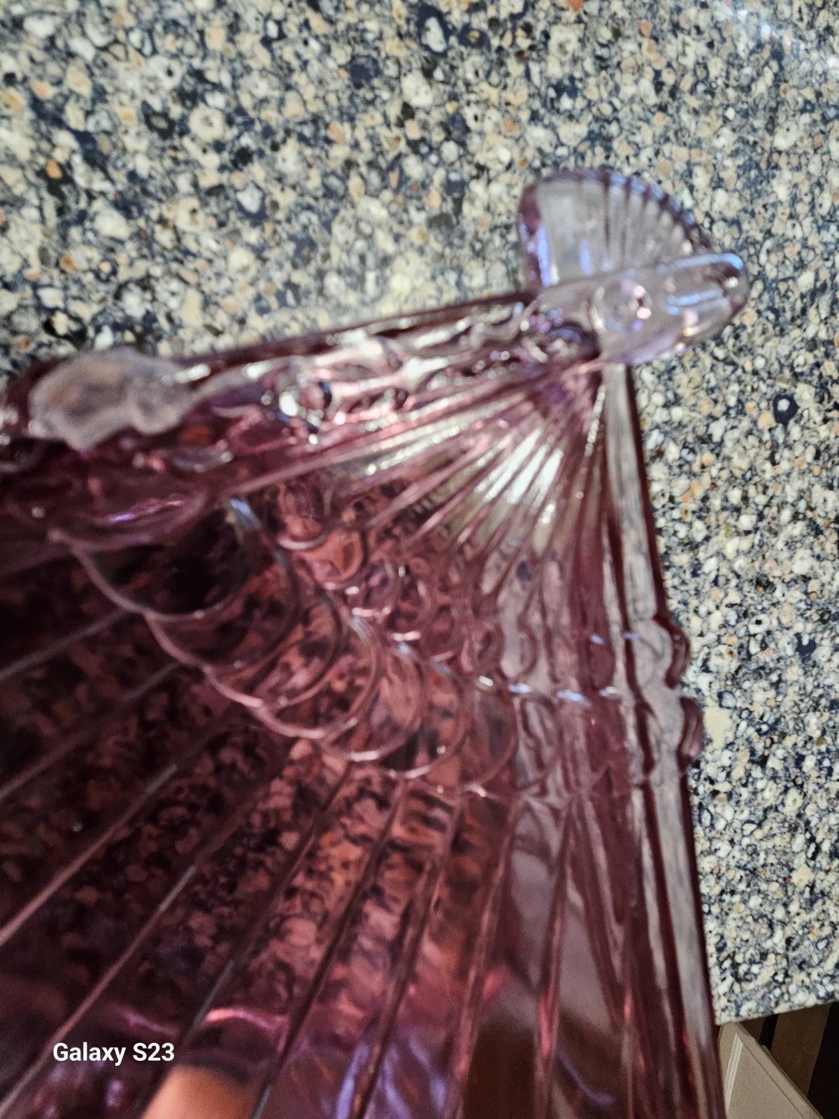 как выглядит RARE Imperial Purple Glass Two Piece Fan Patterned Dish -Detailed-9.5" фото