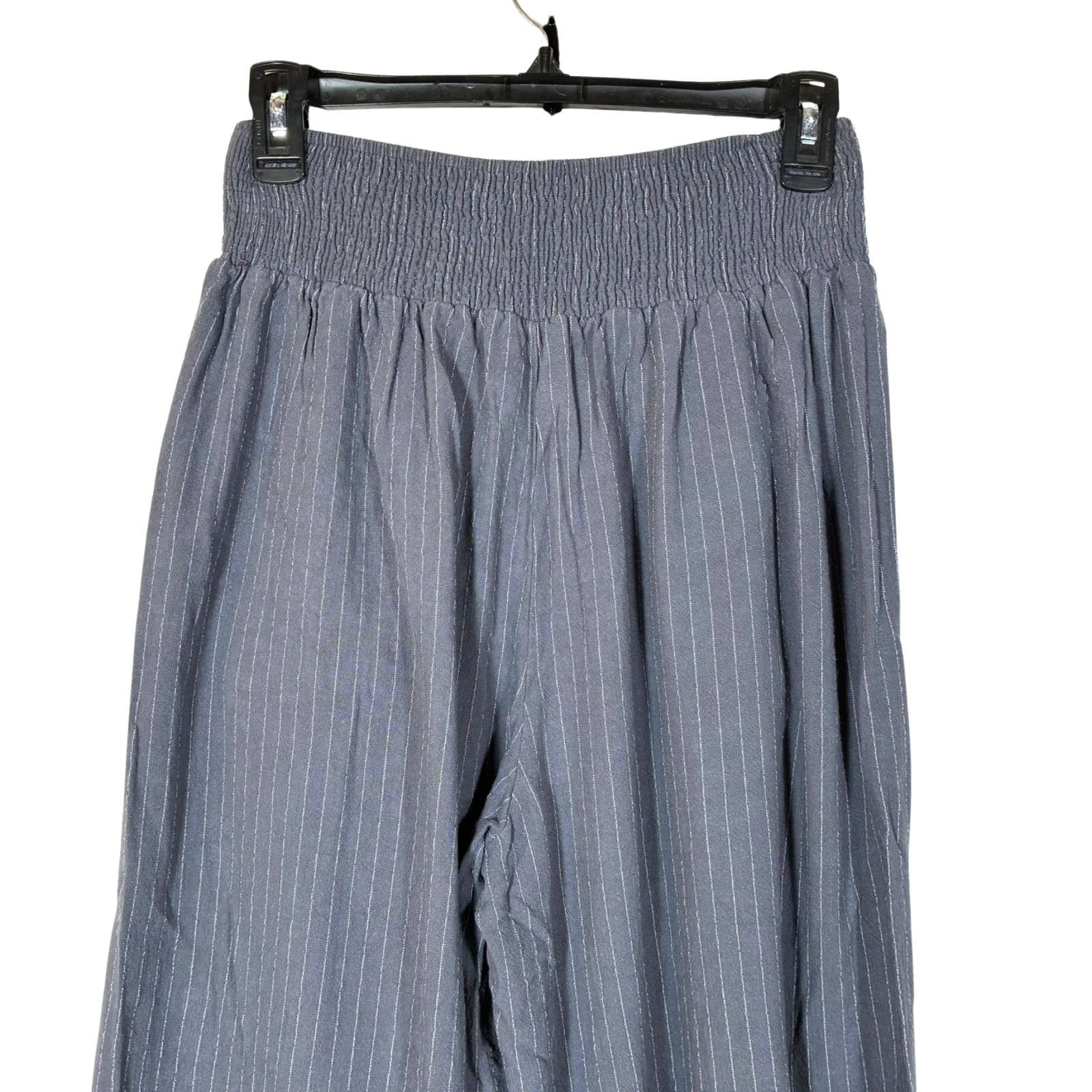 EASEL Super Wide Legged Cropped Pants Gray Pinstripe Linen Blend Small
