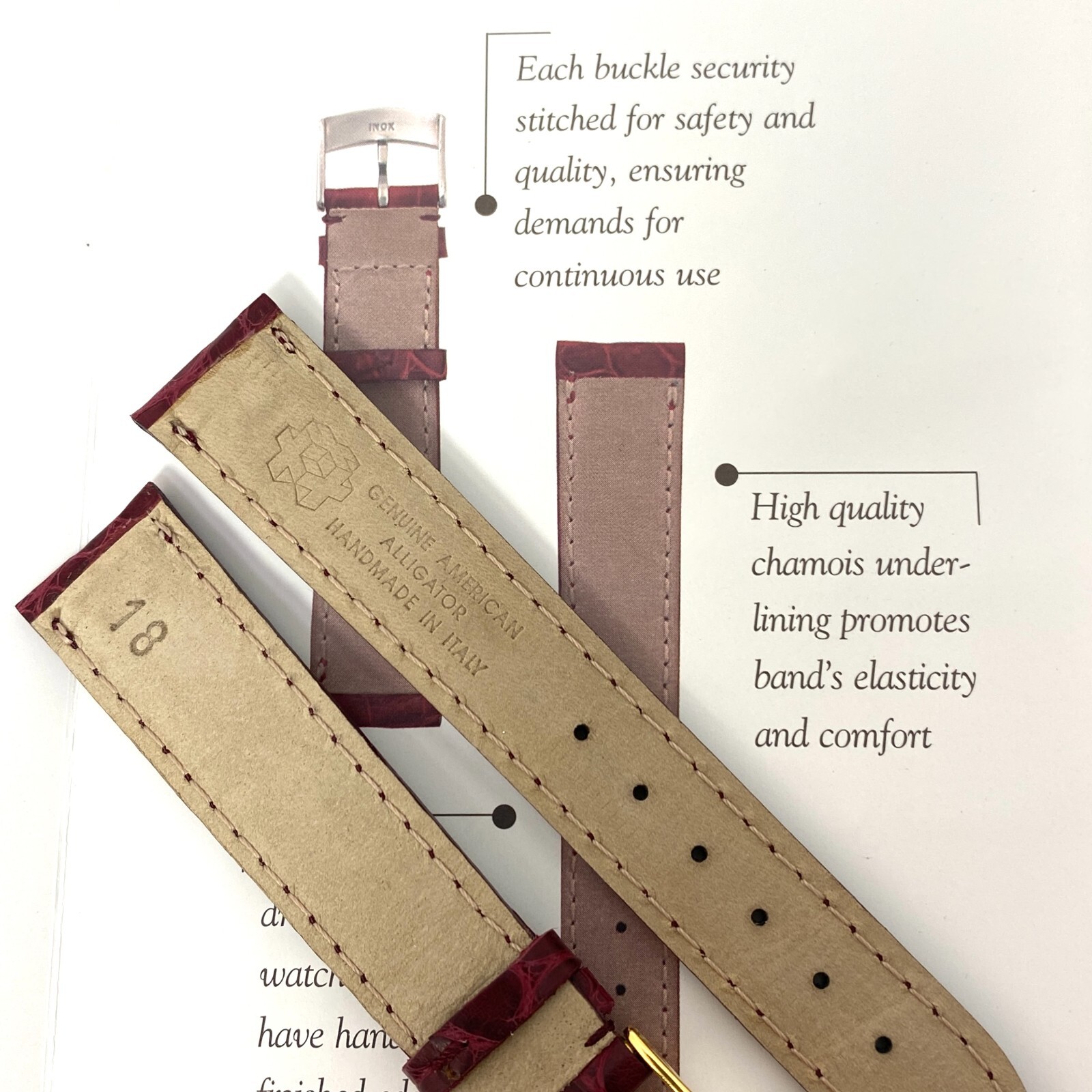 Genuine American Alligator Watch Band Strap Hand Crafted in Italy 20mm Brown