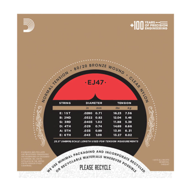 D'Addario EJ47 80/20 Brzn Pro Arte Nylon Classical Guitar Strings; norm tension