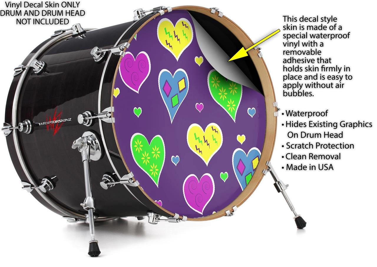 Vinyl Decal Skin for 20 Bass Kick Drum Head Crazy Hearts