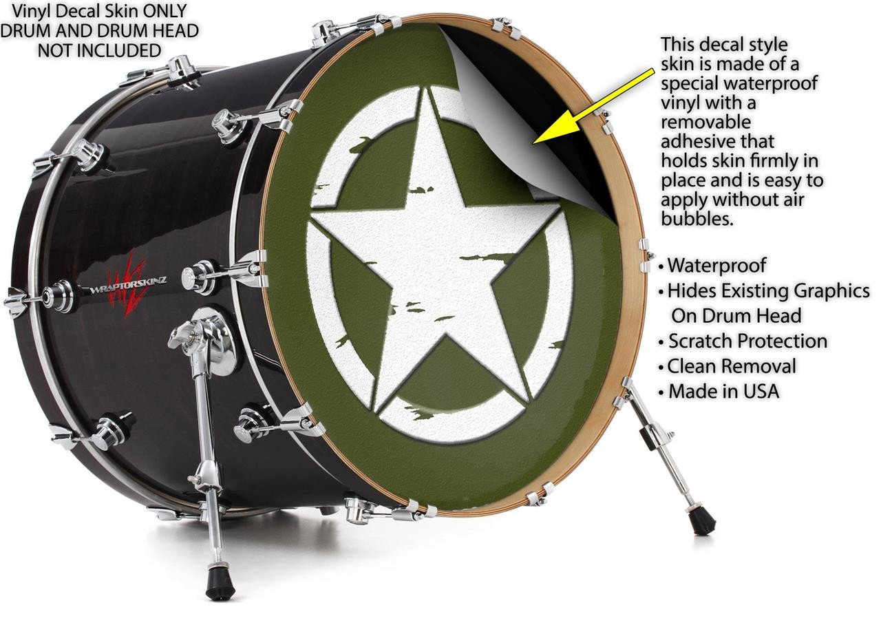 Vinyl Decal Skin for 20 Bass Kick Drum Head Distressed Army Star