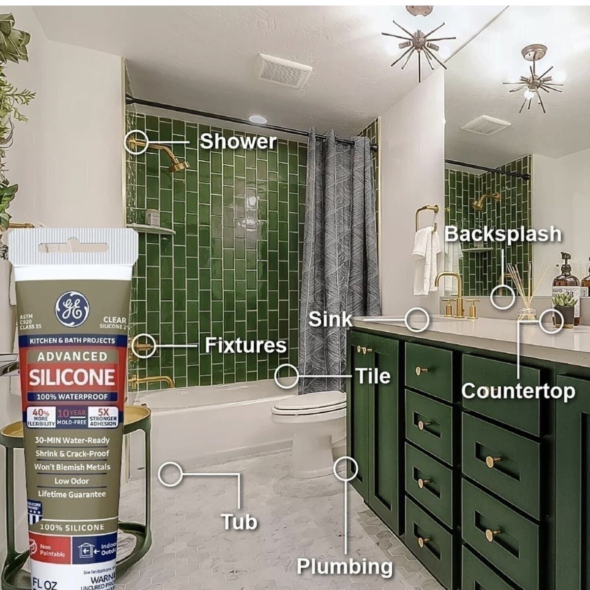 GE Advanced Silicone Caulk for Kitchen Bathroom - 100 Waterproof Silicone...